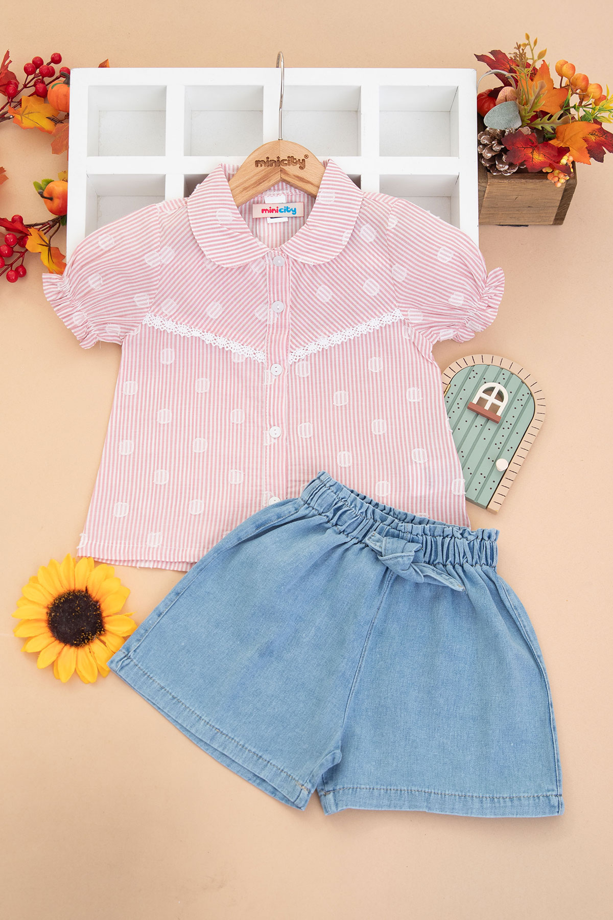Kız Çocuk Fistolu Gömlek Şortlu Takım - 326168 (3-7 Yaş)