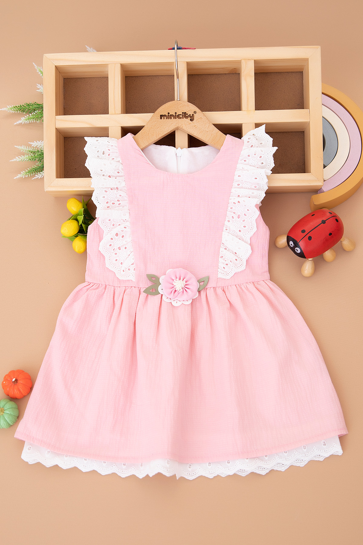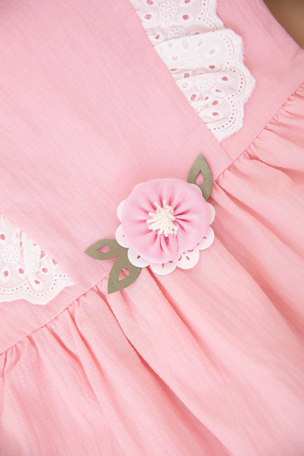 Kız Çocuk Fistolu Pamuk Gofre Elbise - 5038 (2-5 Yaş)