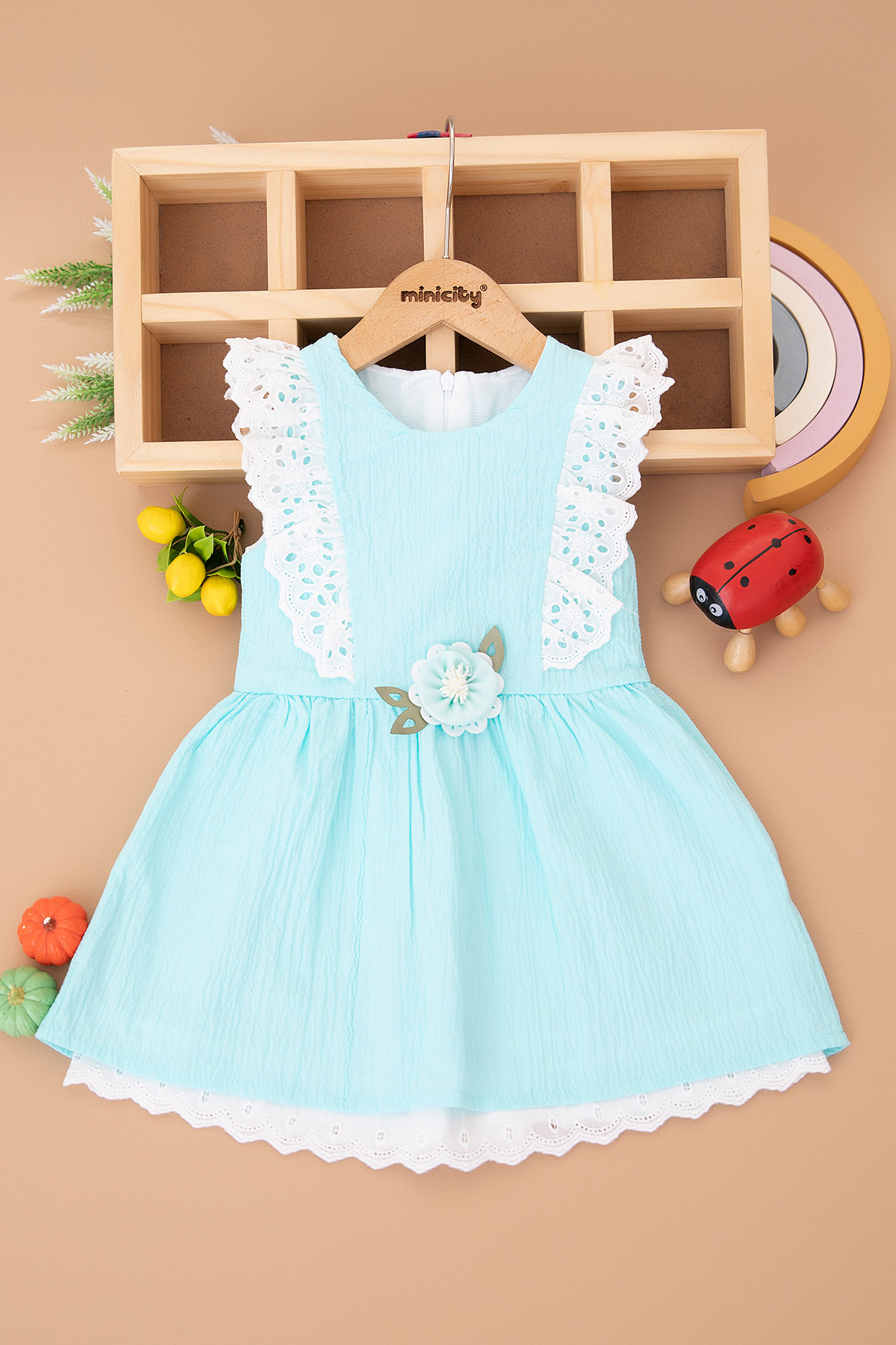 Kız Çocuk Fistolu Pamuk Gofre Elbise - 5038 (2-5 Yaş)