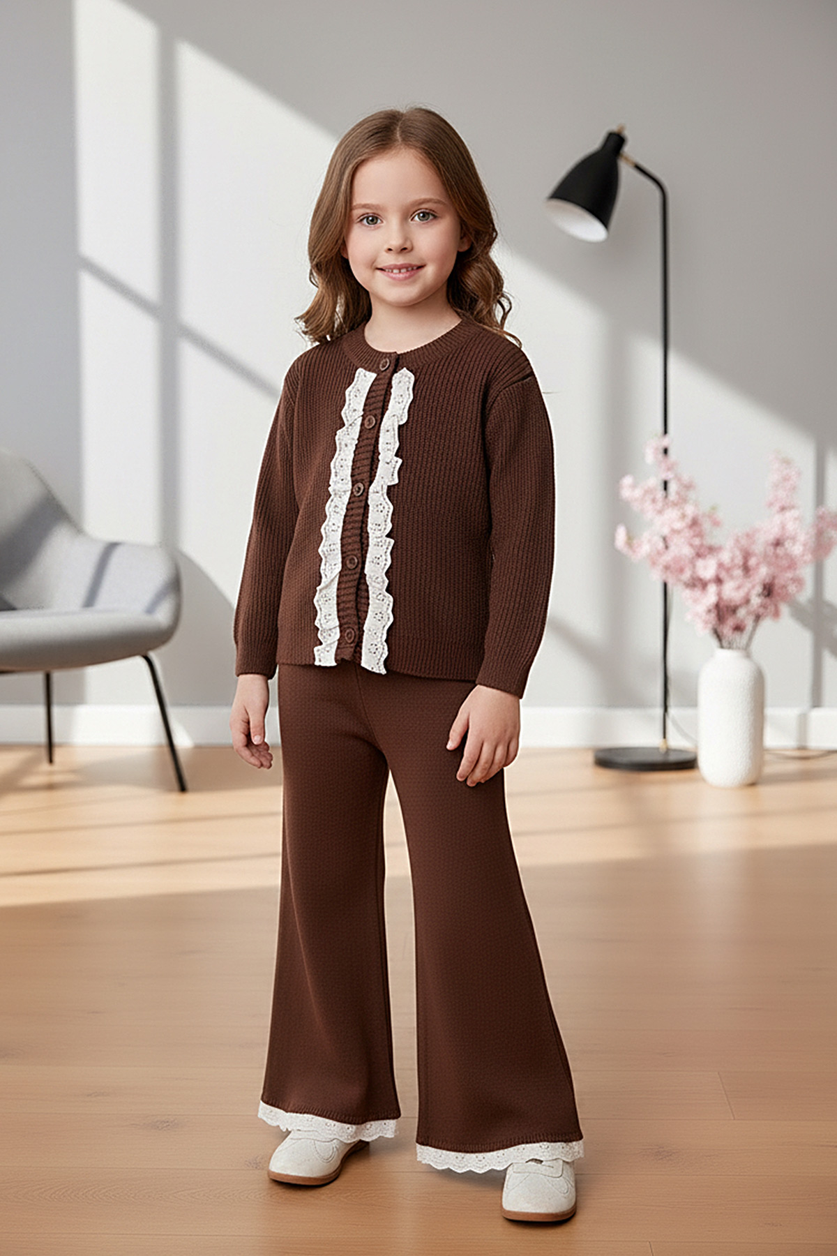 Kız Çocuk Fistolu Triko Hırkalı Takım (3-10 Yaş)