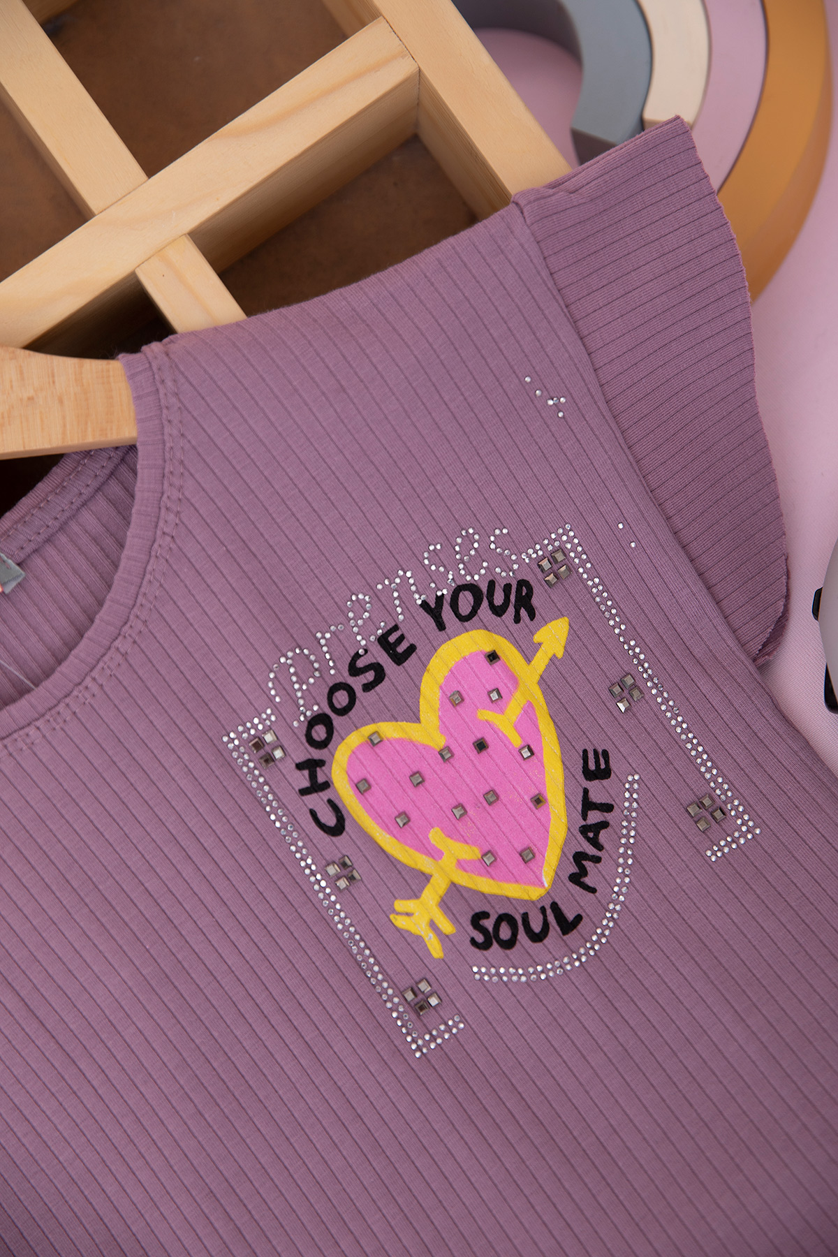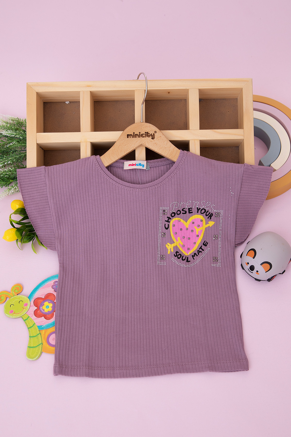 Kız Çocuk Fitili Kalp Baskılı Body - 180320 (3-12 Yaş)