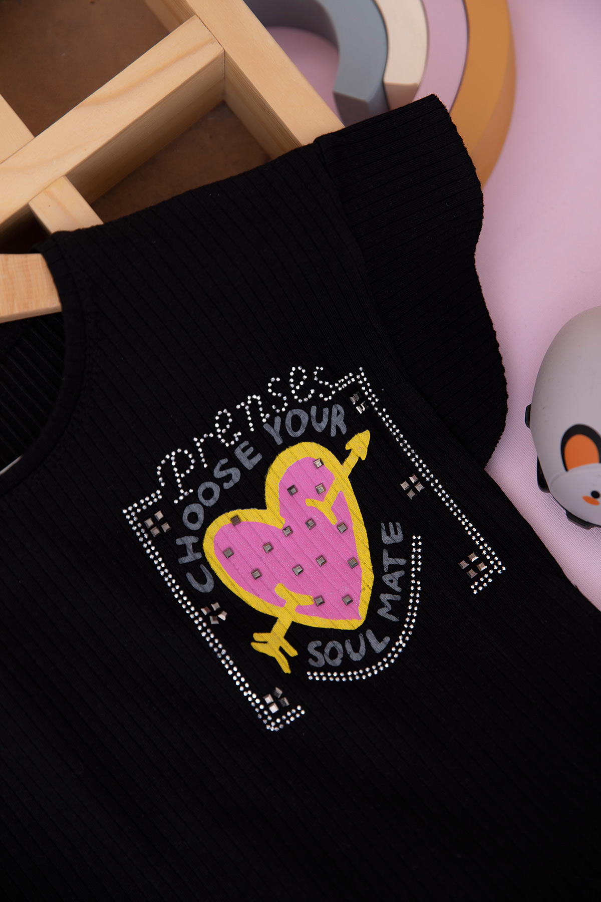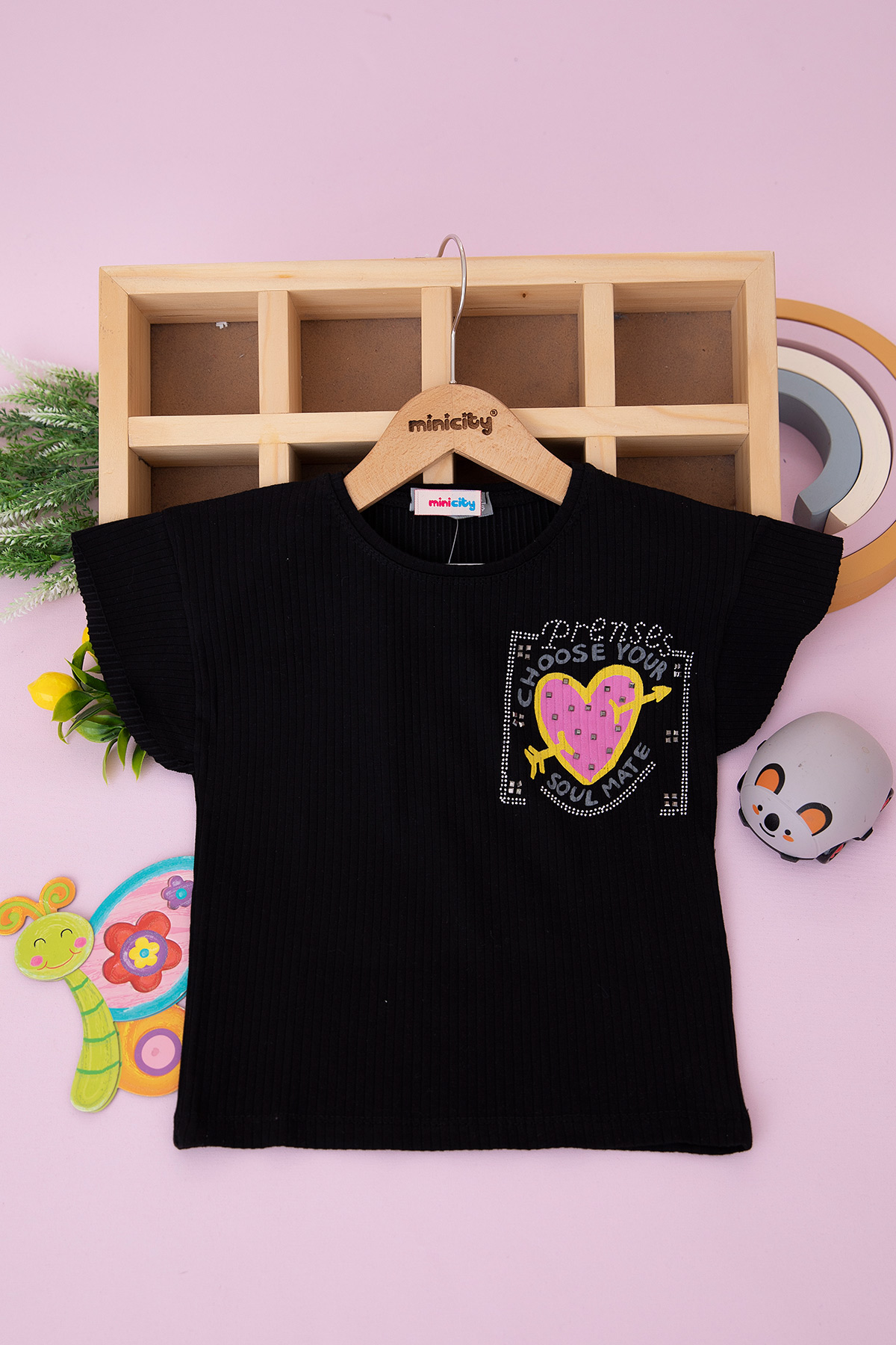 Kız Çocuk Fitili Kalp Baskılı Body - 180320 (3-12 Yaş)