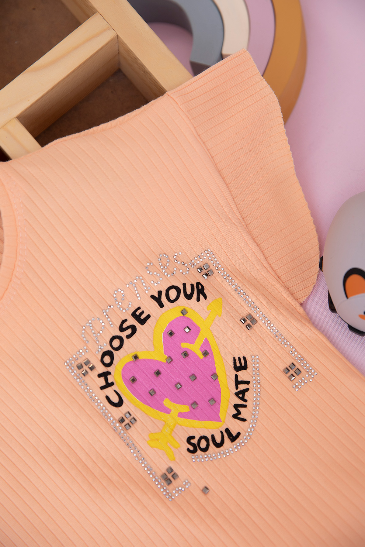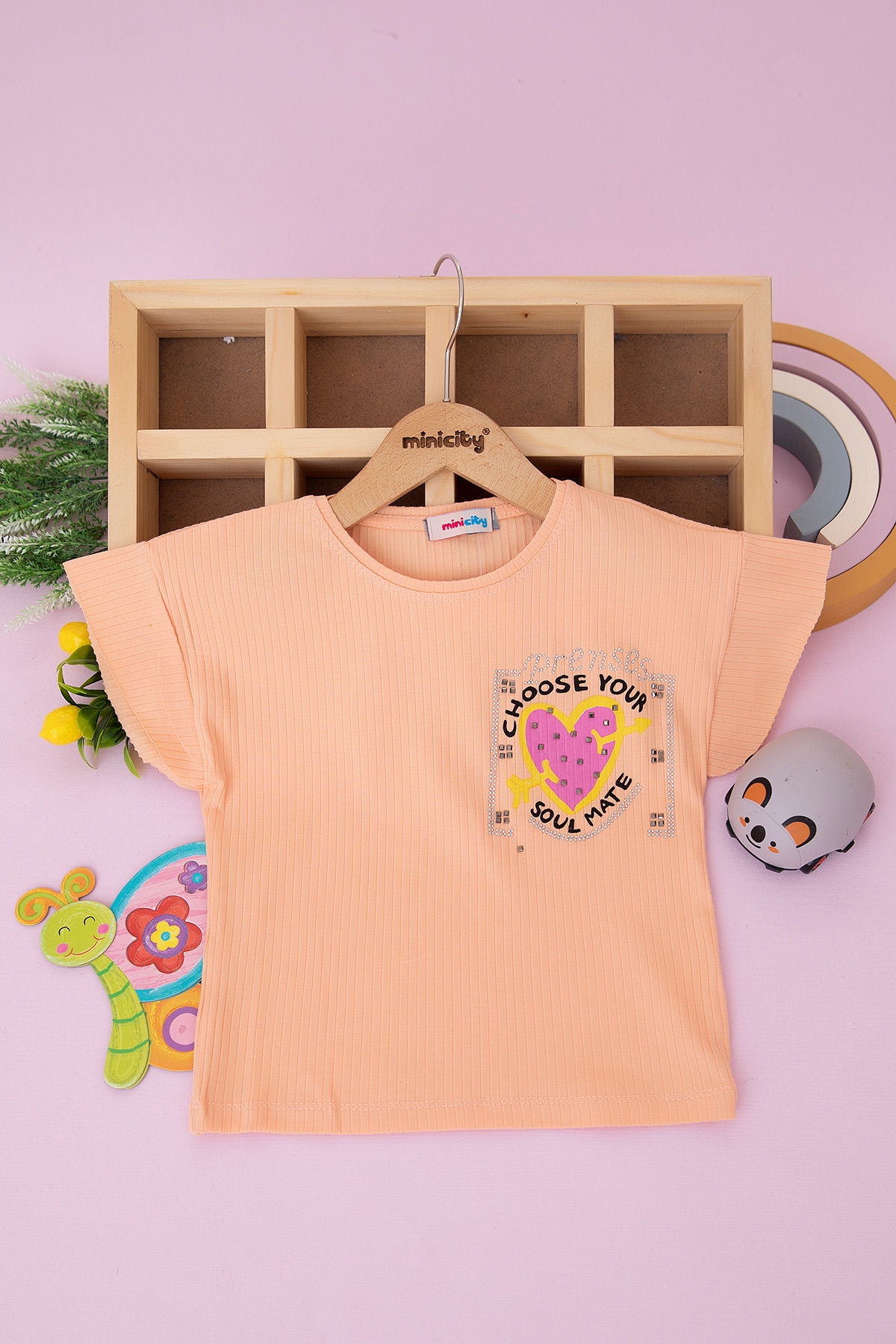 Kız Çocuk Fitili Kalp Baskılı Body - 180320 (3-12 Yaş)