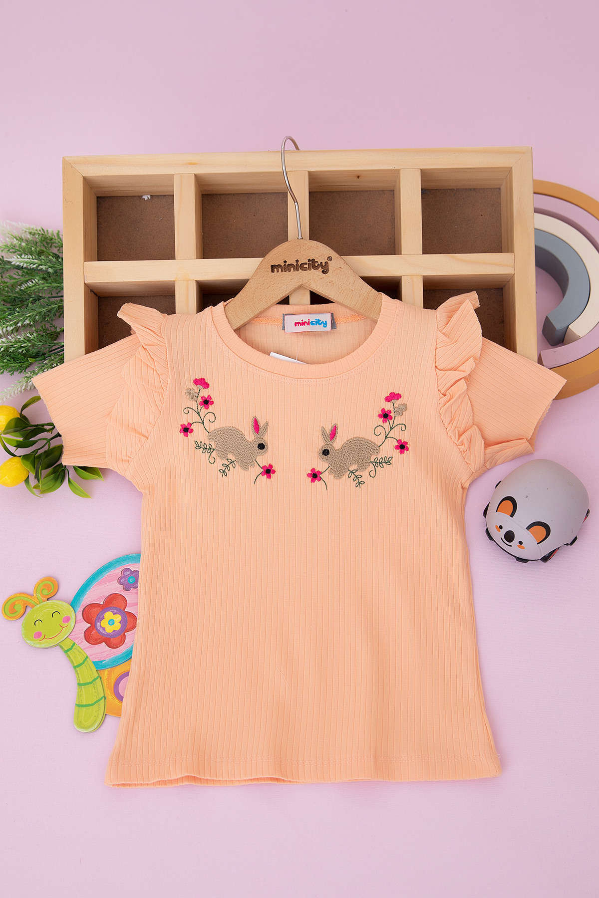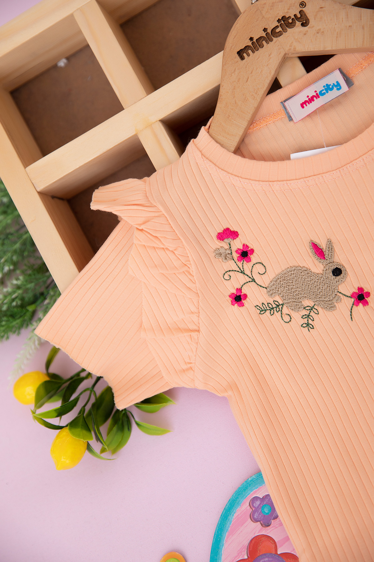 Kız Çocuk Fitili Tavşan Nakışlı Body - 180310 (3-12 Yaş)