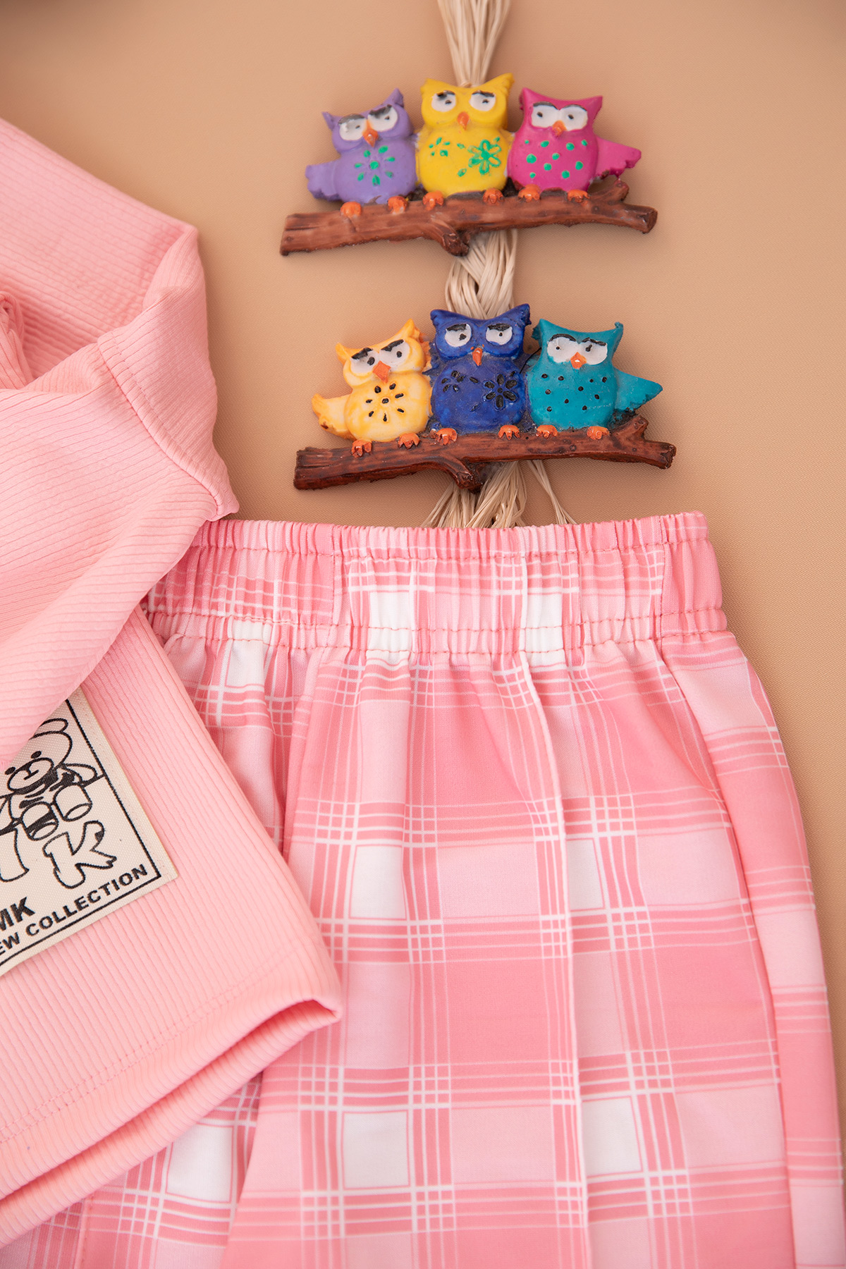 Kız Çocuk Fitilli Alt Kareli Takım - 190095 (4-11 Yaş)