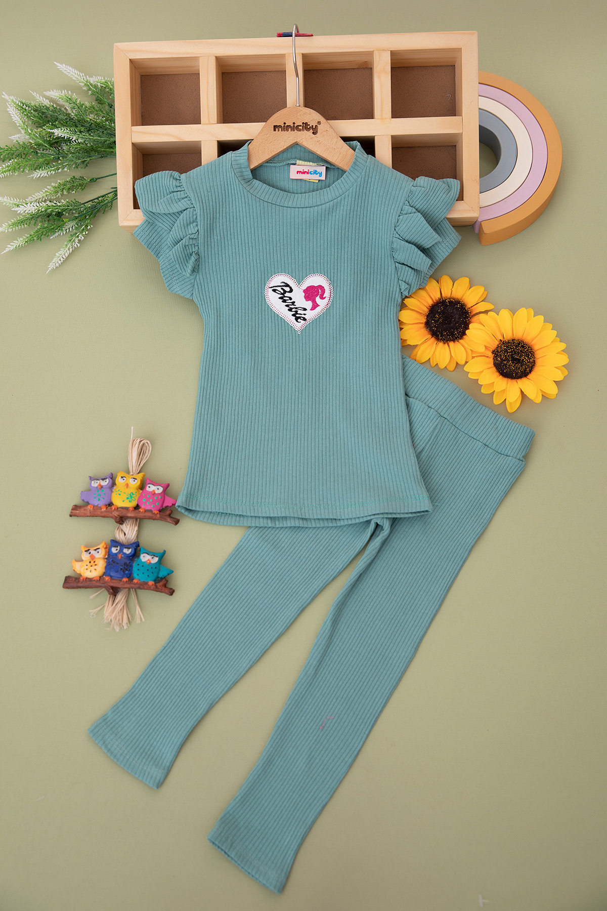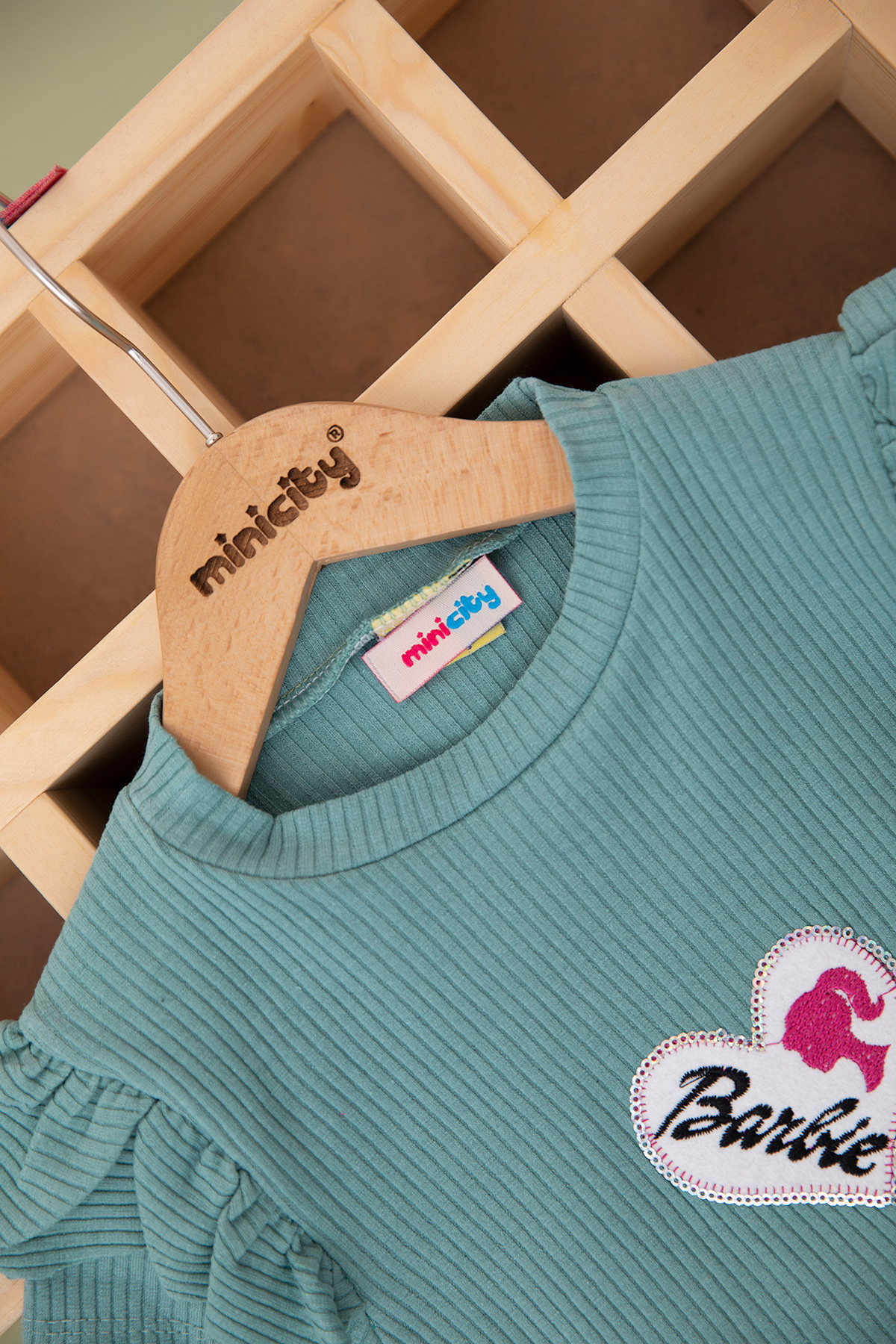 Kız Çocuk Fitilli Barbie Nakışlı Taytlı Takım (3-7 Yaş)
