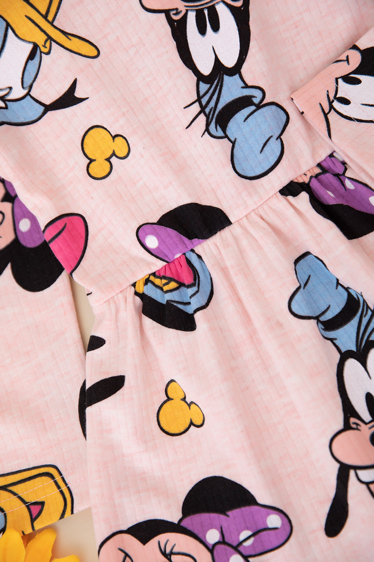 Kız Çocuk Fitilli Baskılı Desenli Elbise (3-7 Yaş)