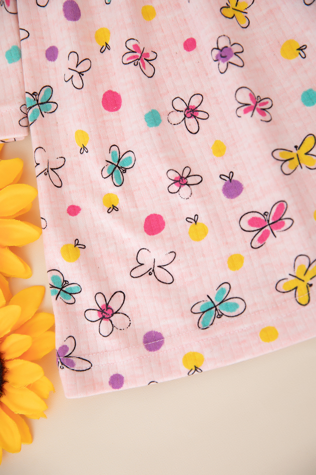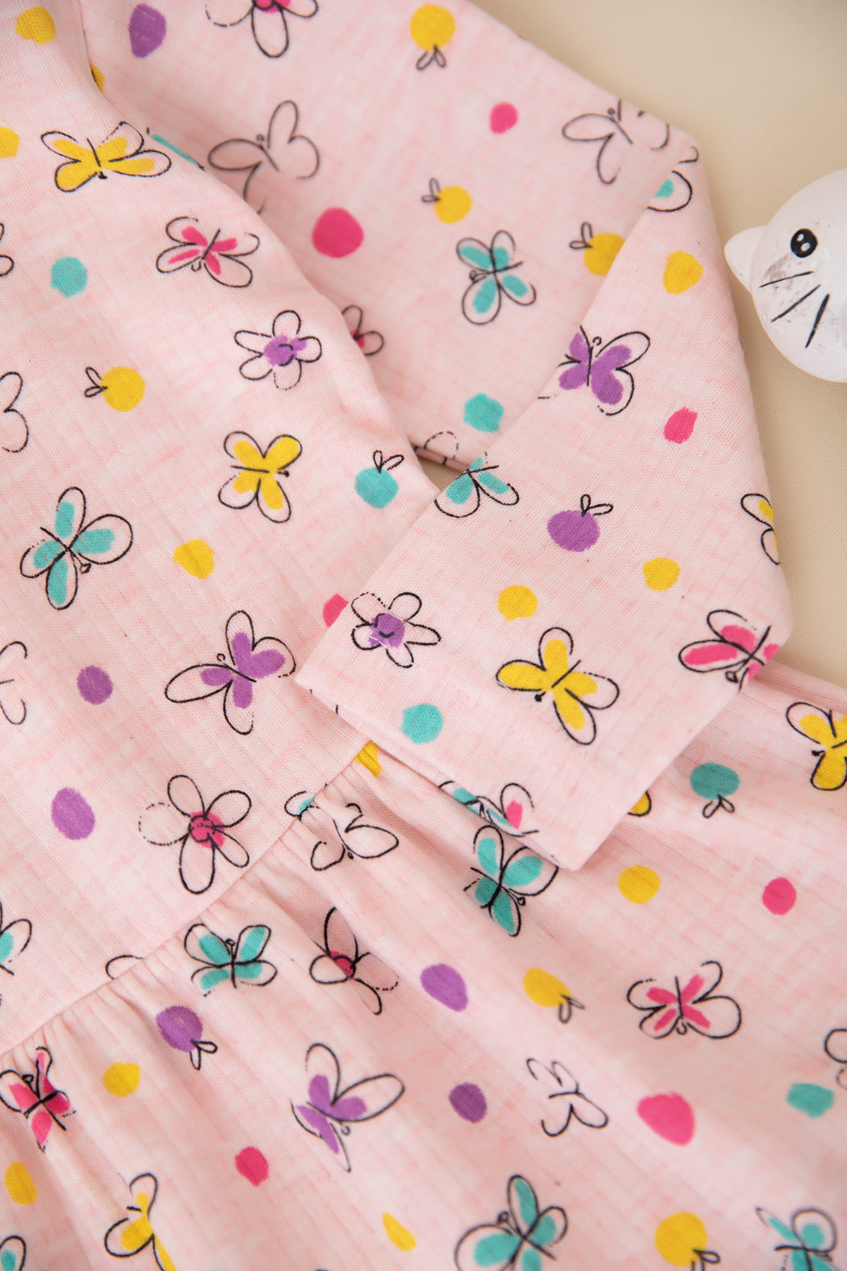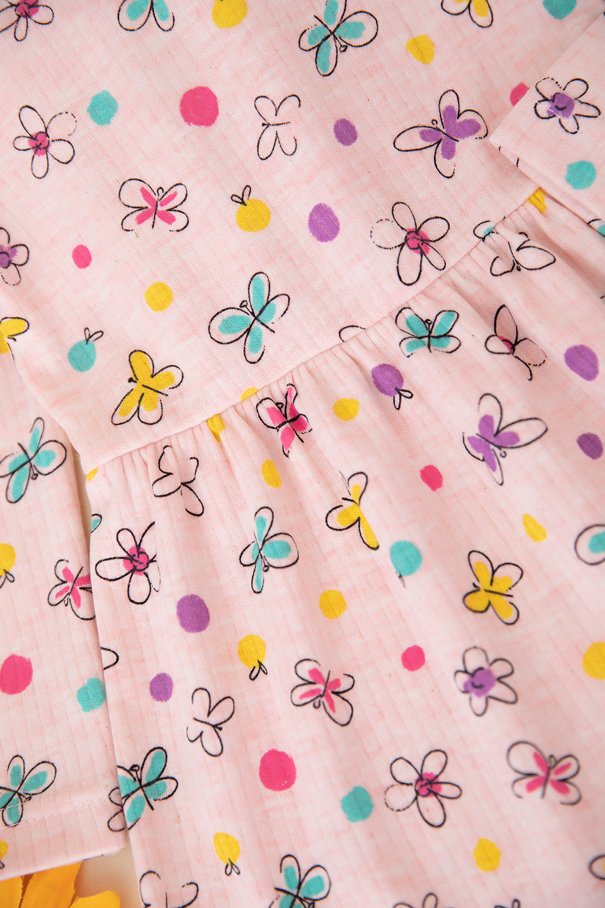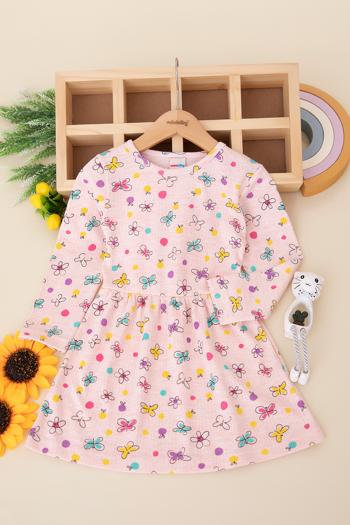 Kız Çocuk Fitilli Baskılı Desenli Elbise (3-7 Yaş)