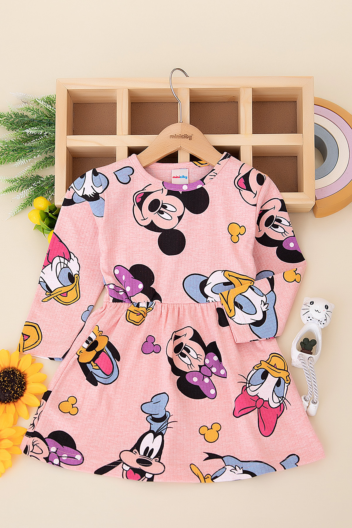 Kız Çocuk Fitilli Baskılı Desenli Elbise (7-12 Yaş)