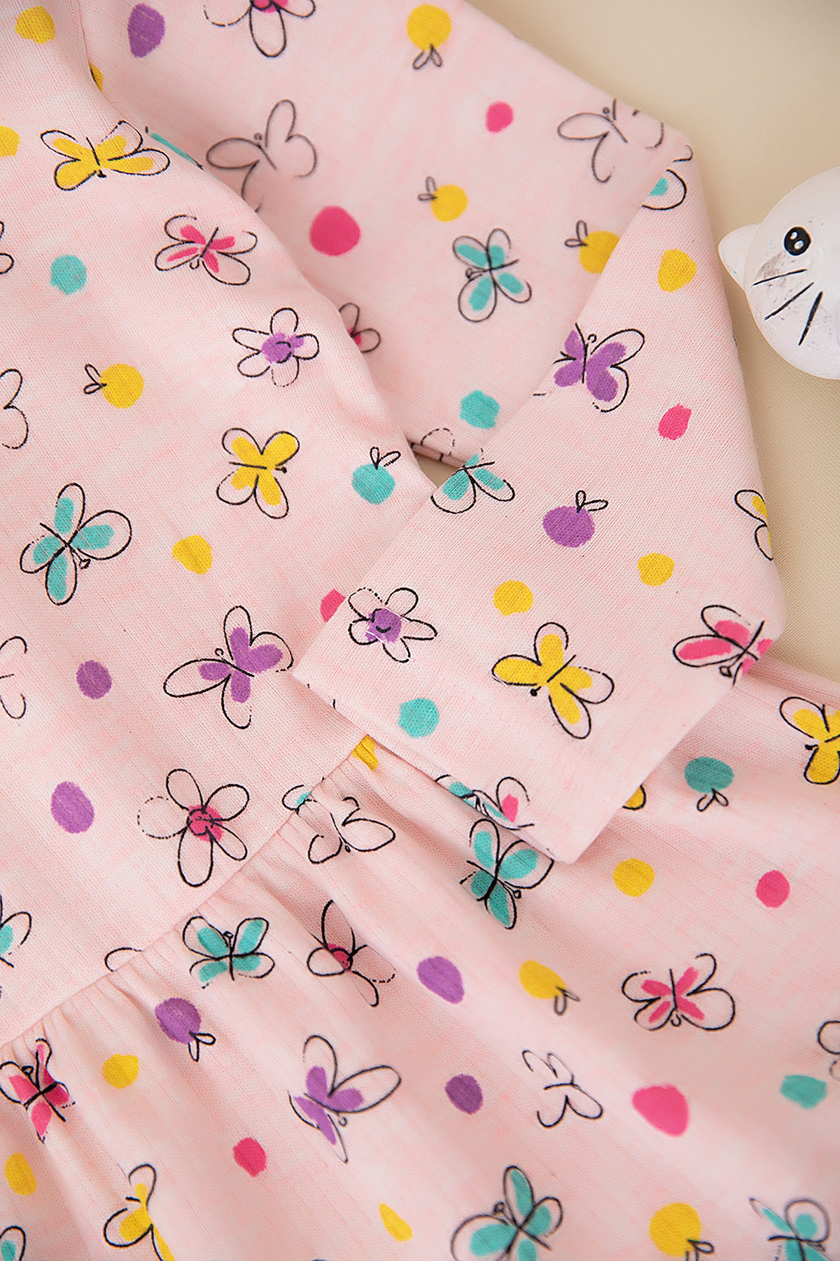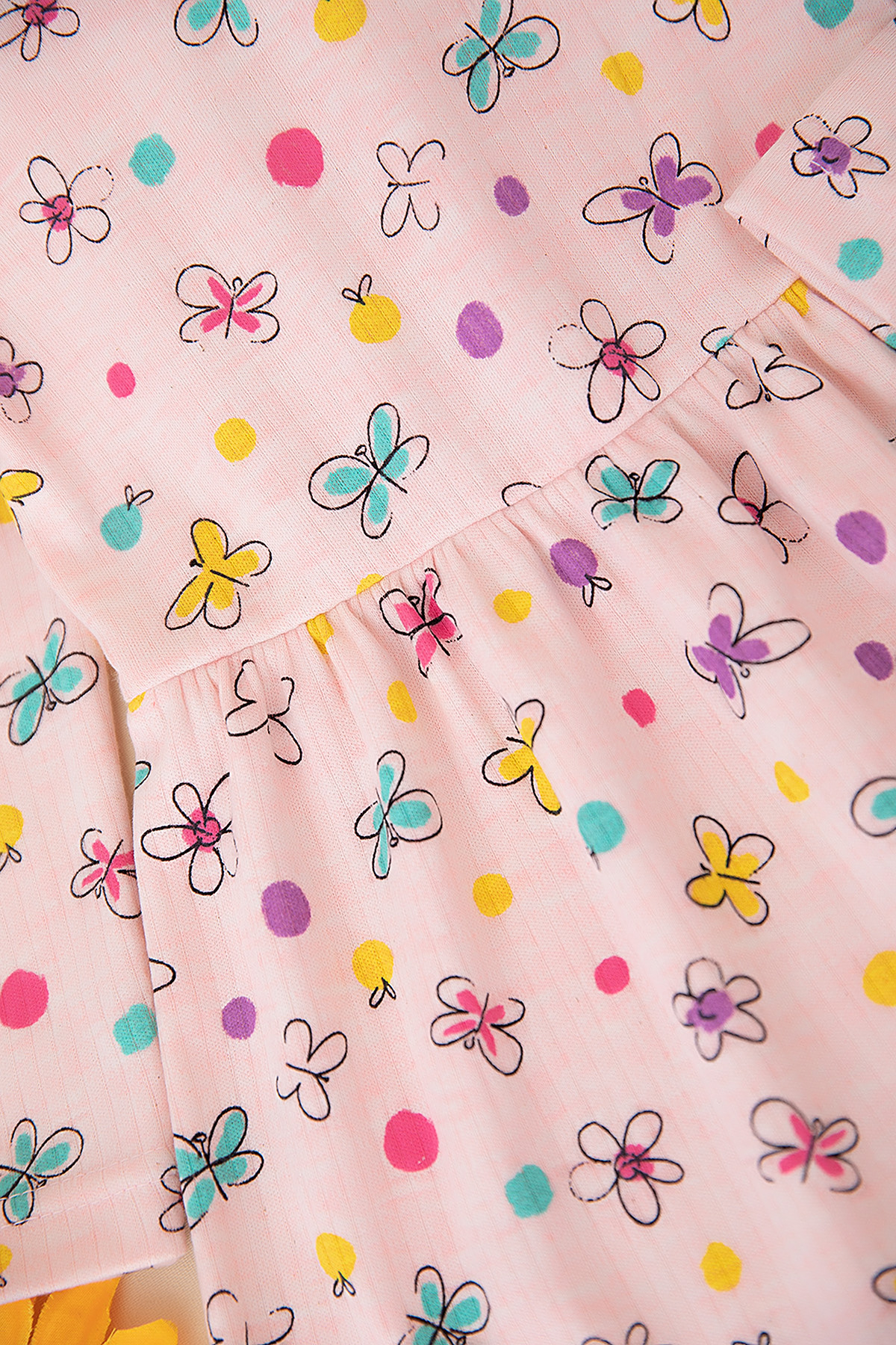 Kız Çocuk Fitilli Baskılı Desenli Elbise (7-12 Yaş)
