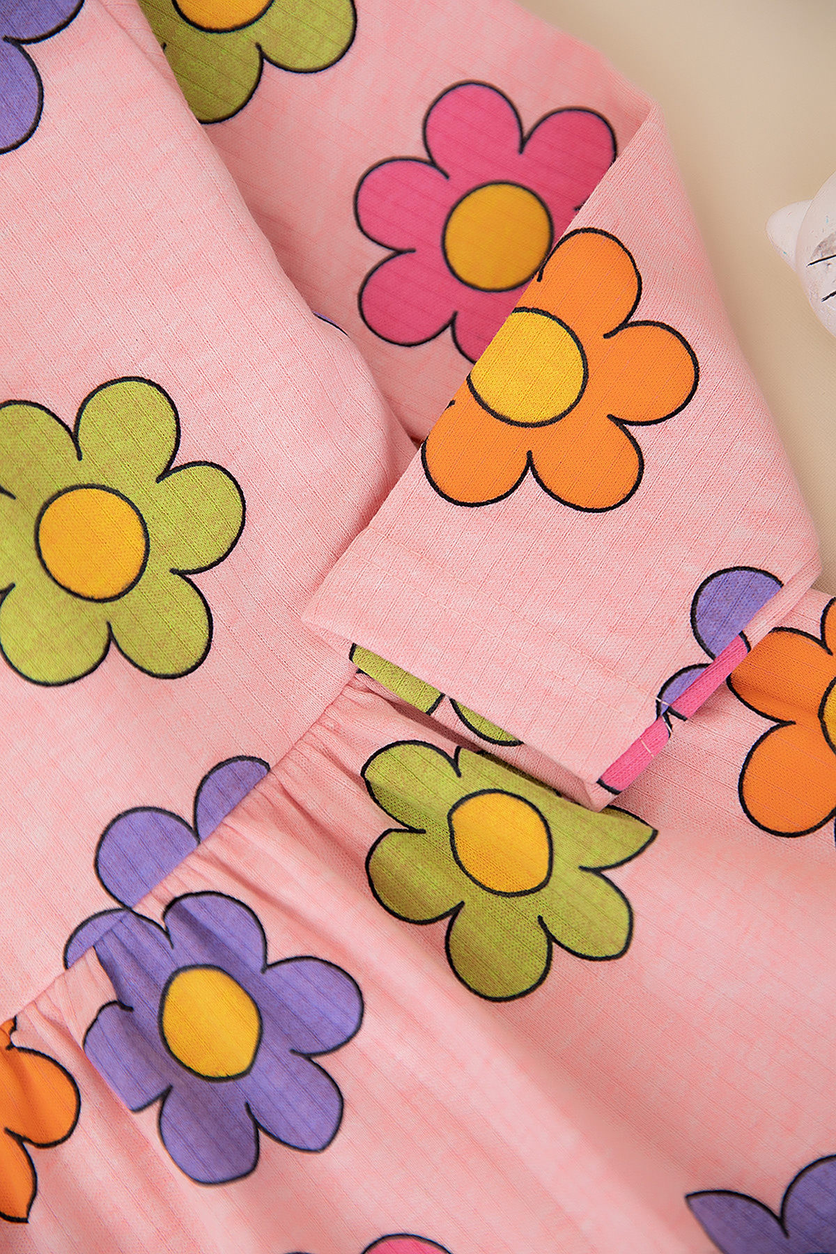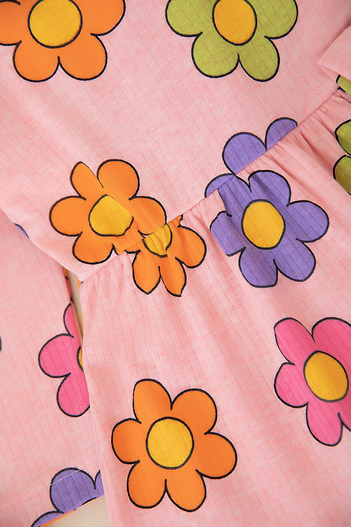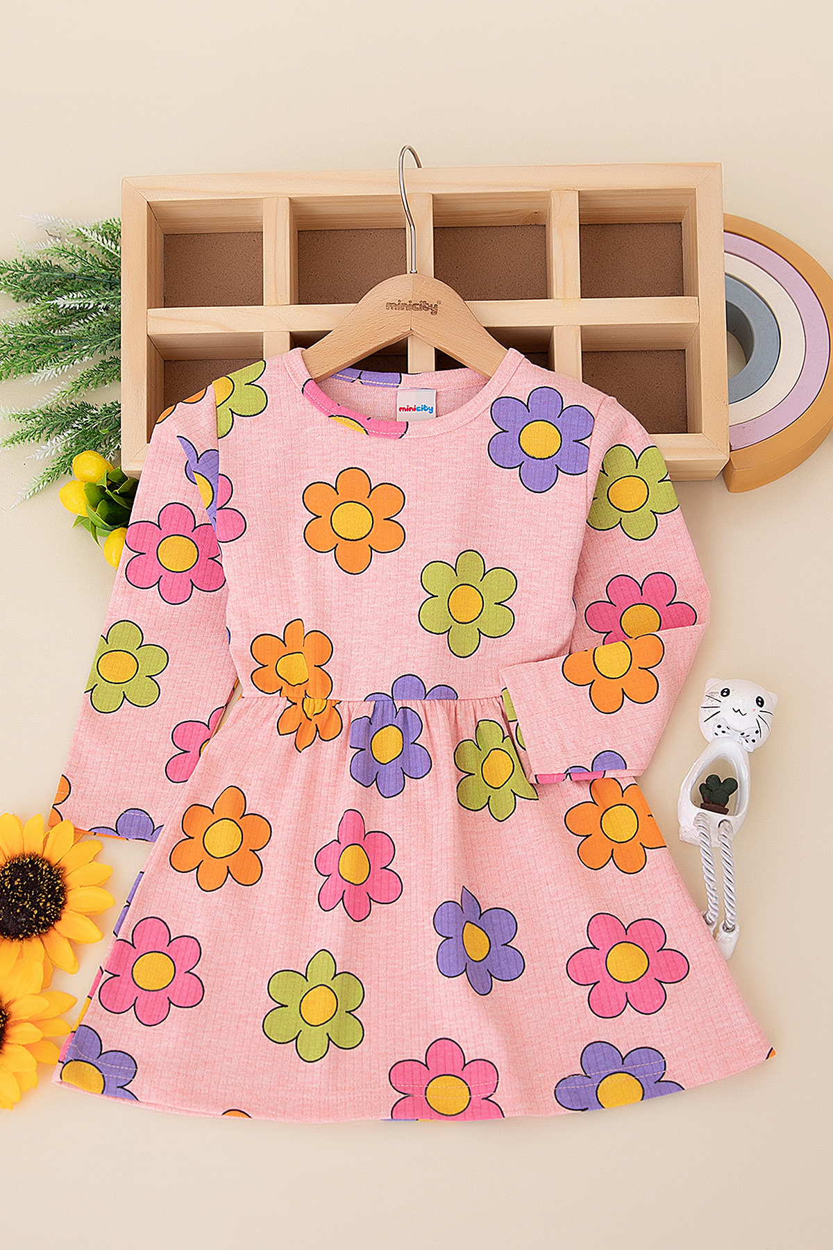 Kız Çocuk Fitilli Baskılı Desenli Elbise (7-12 Yaş)