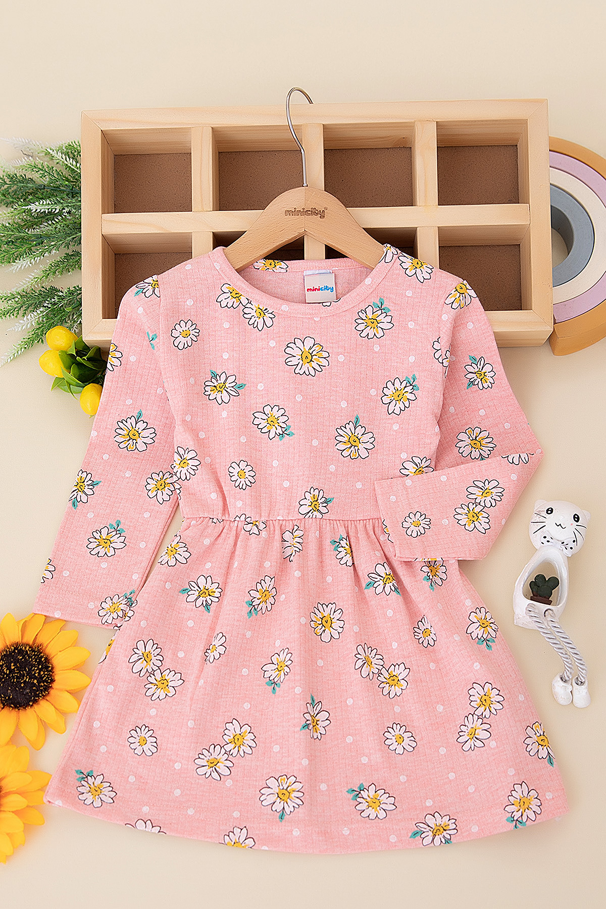 Kız Çocuk Fitilli Baskılı Desenli Elbise (7-12 Yaş)