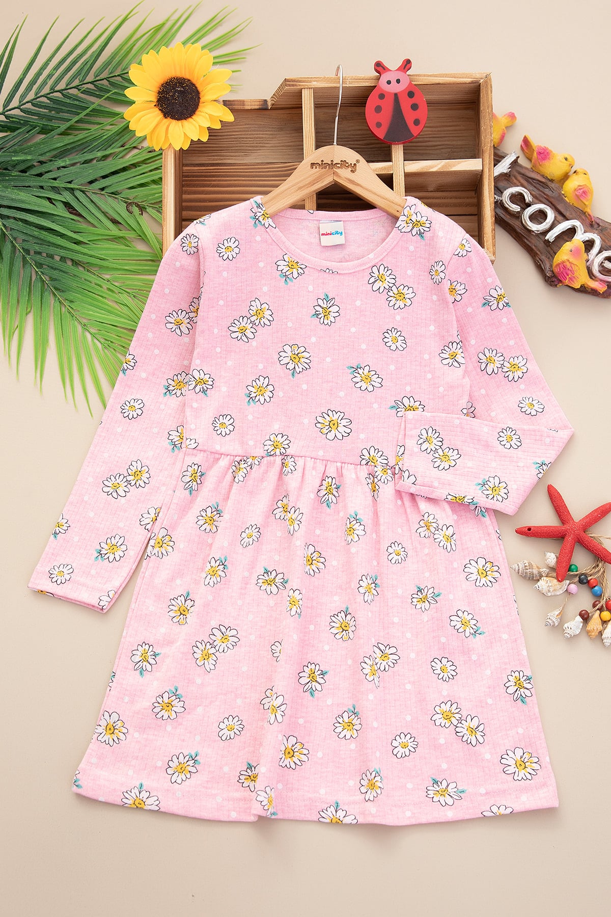 Kız Çocuk Fitilli Baskılı Desenli Elbise (7-12 Yaş)