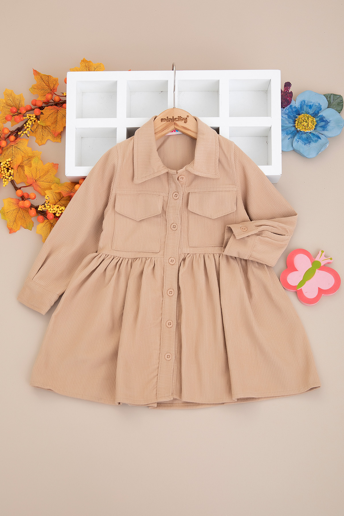 Kız Çocuk Fitilli Cep Kapaklı Elbise - 1549 (6-9 Yaş)