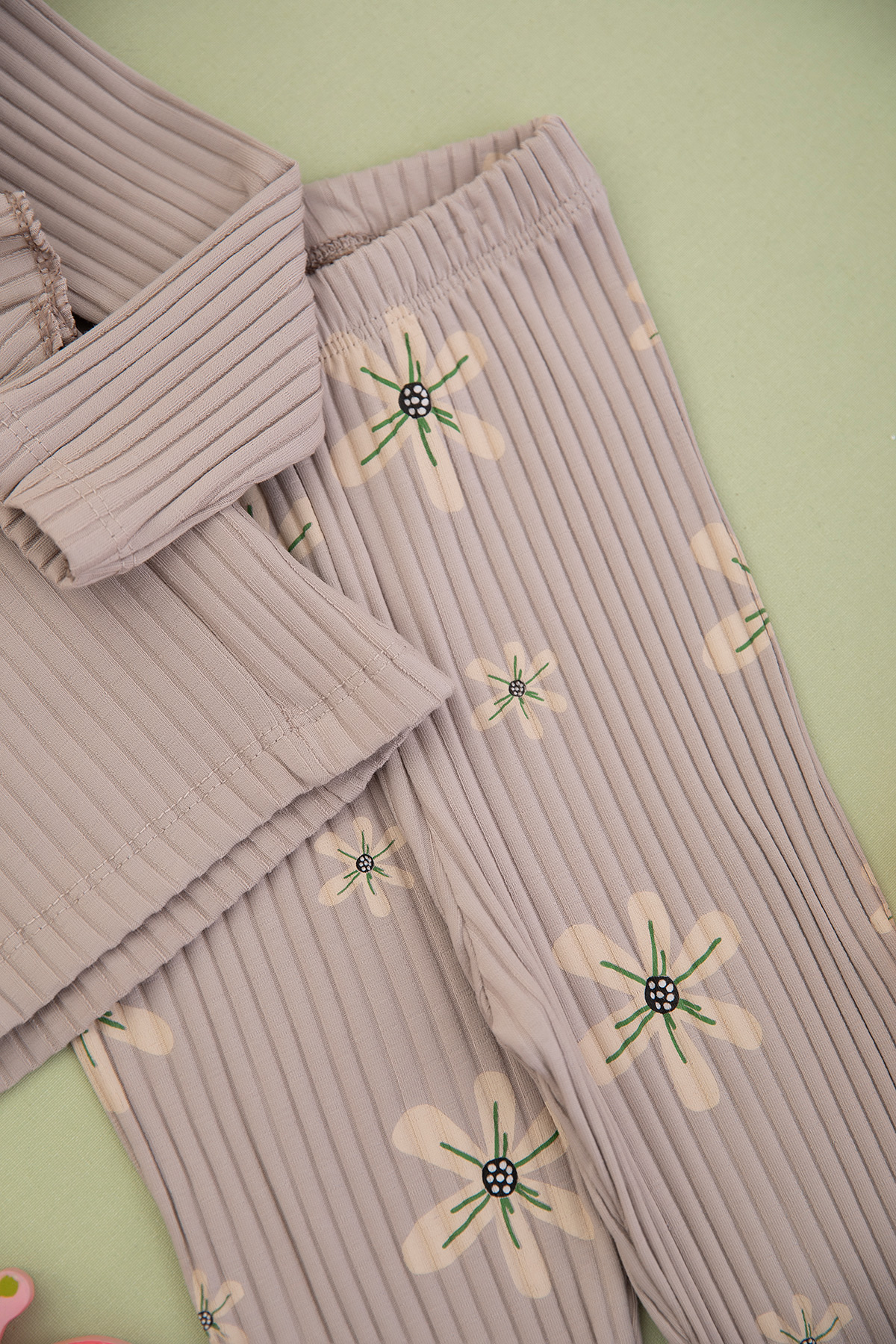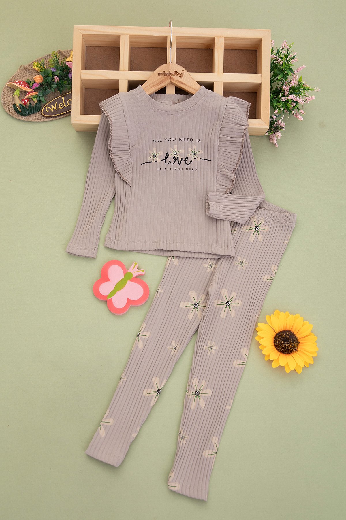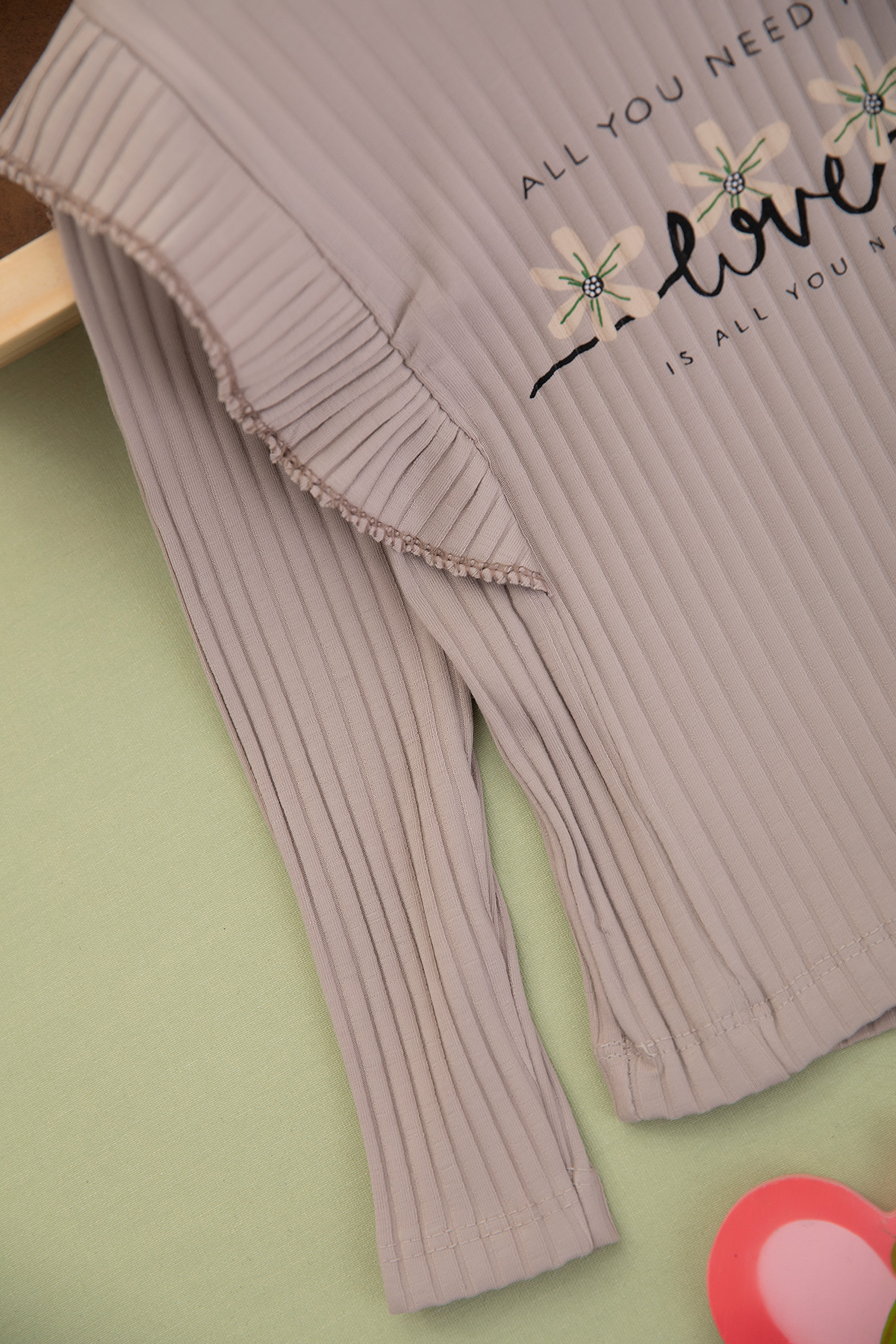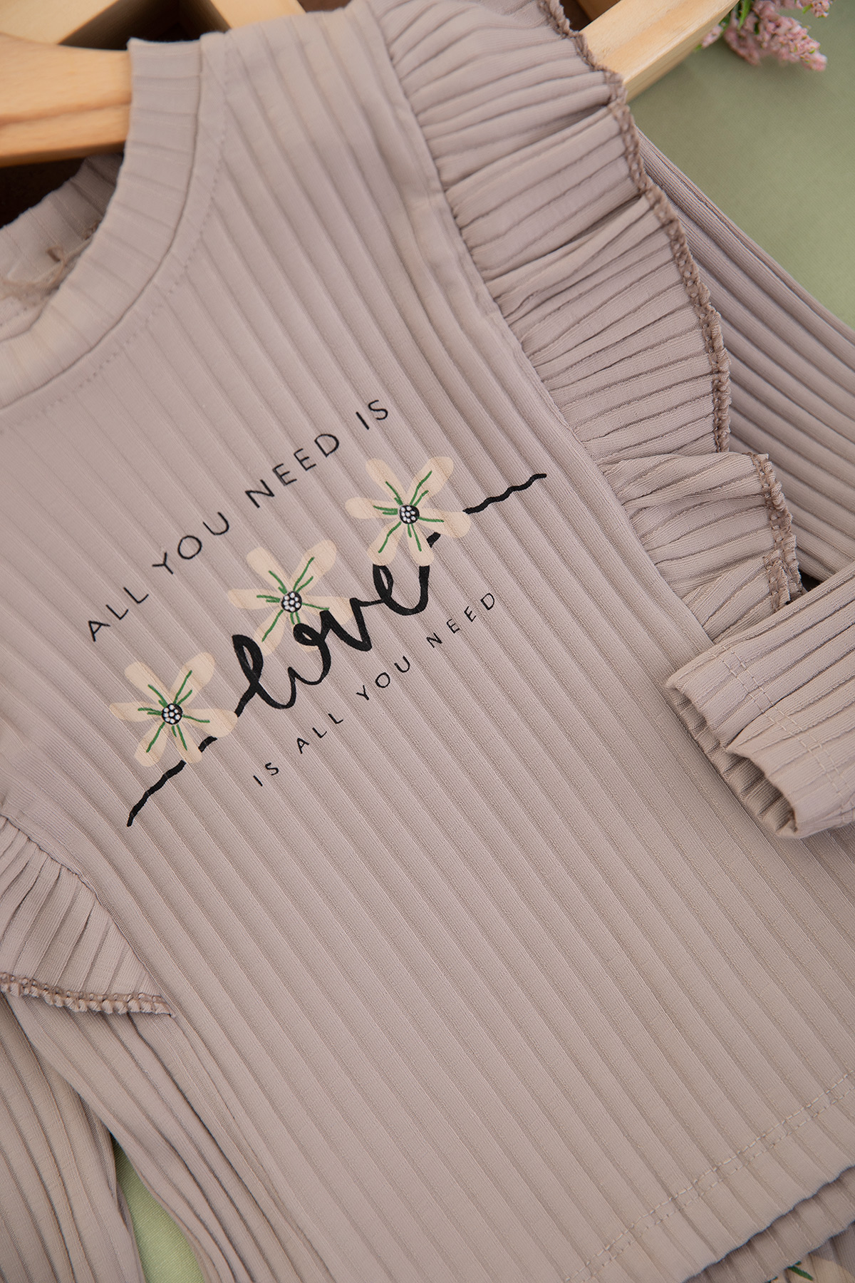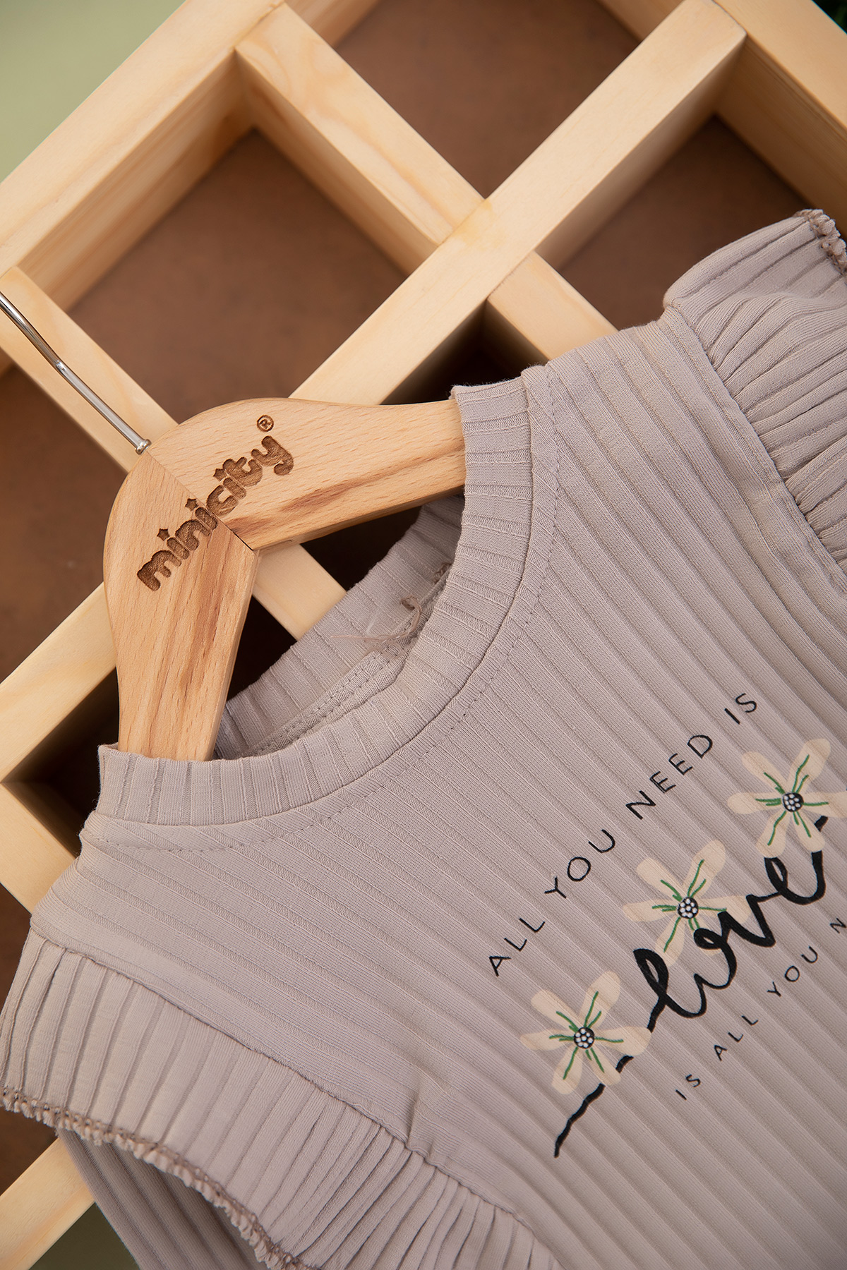 Kız Çocuk Fitilli Çiçekli Love Baskılı Takım - 2339 (3-6 Yaş)