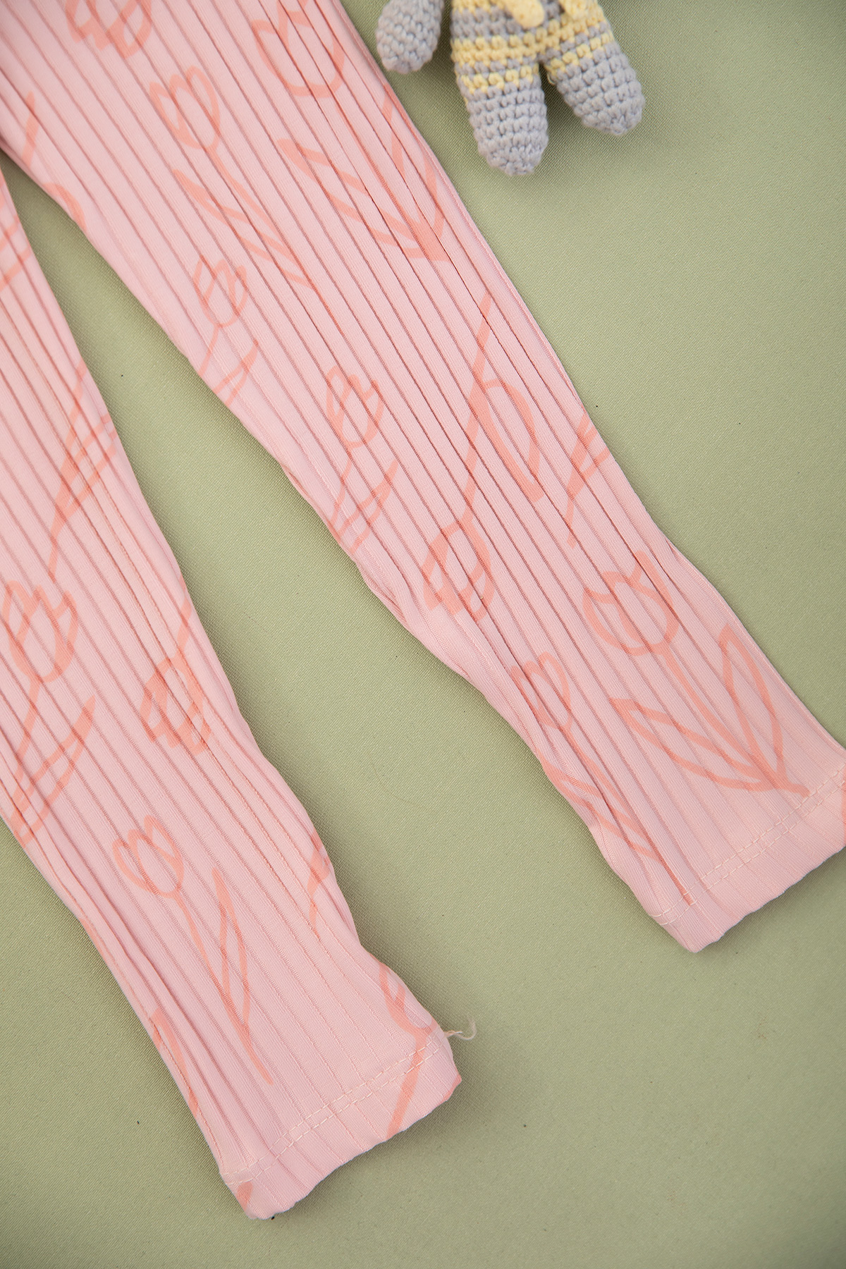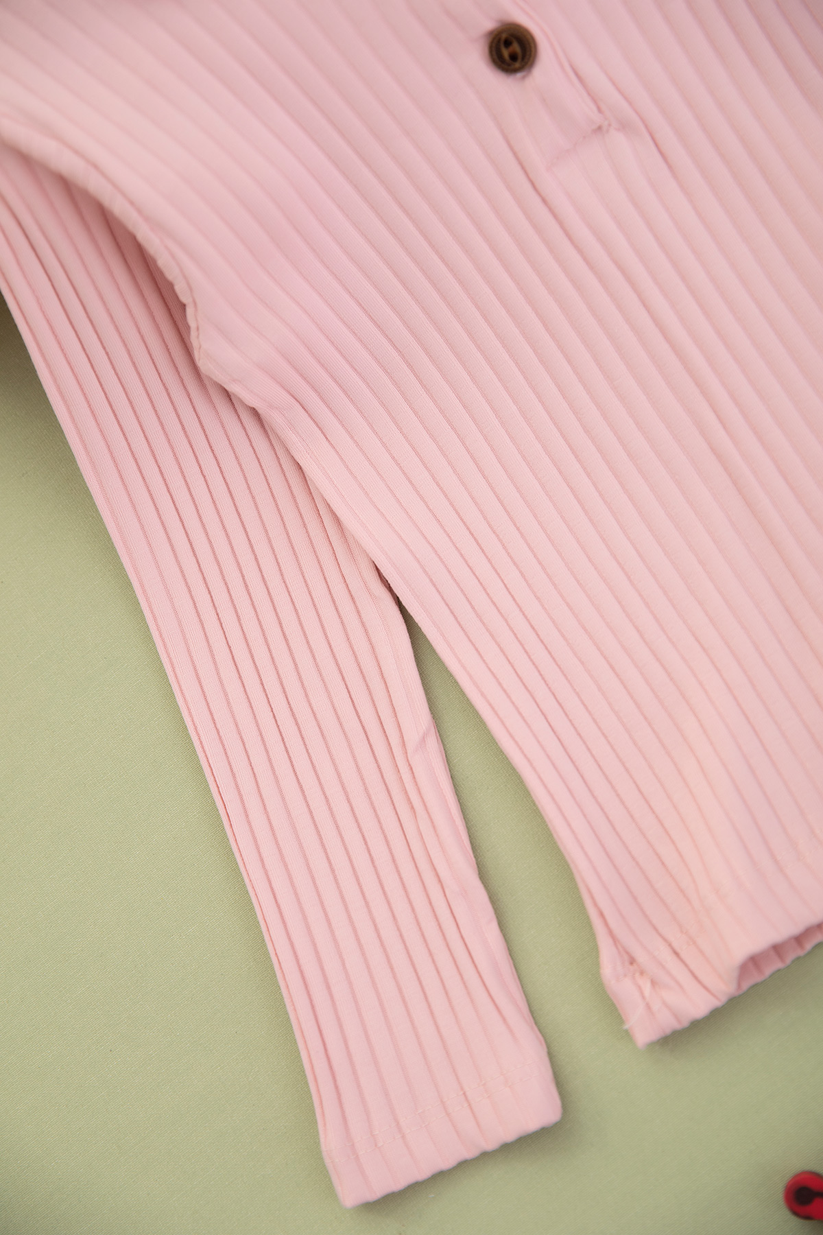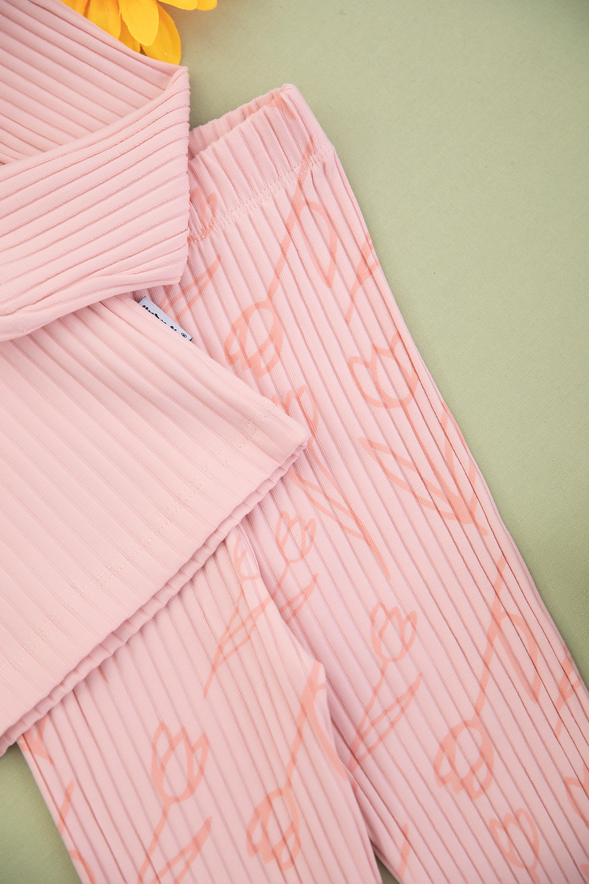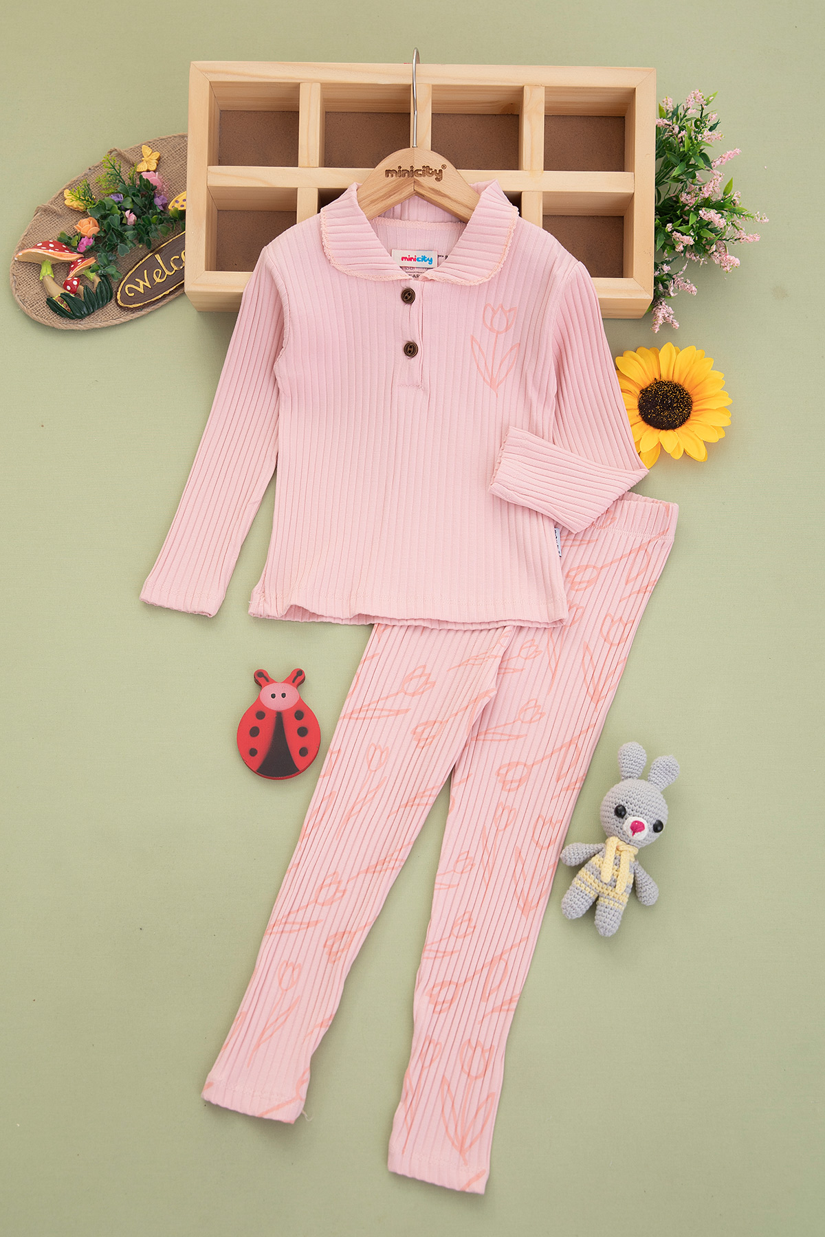 Kız Çocuk Fitilli Düğmeli Lale Baskılı Takım - 2341 (3-6 Yaş)