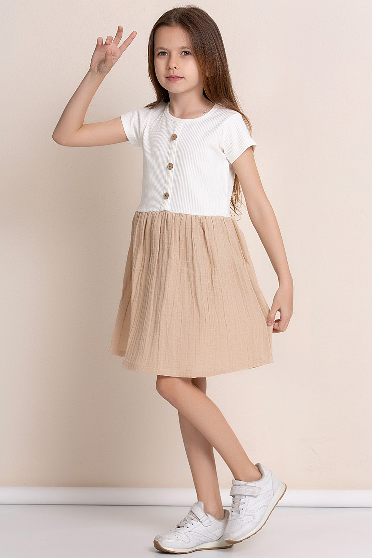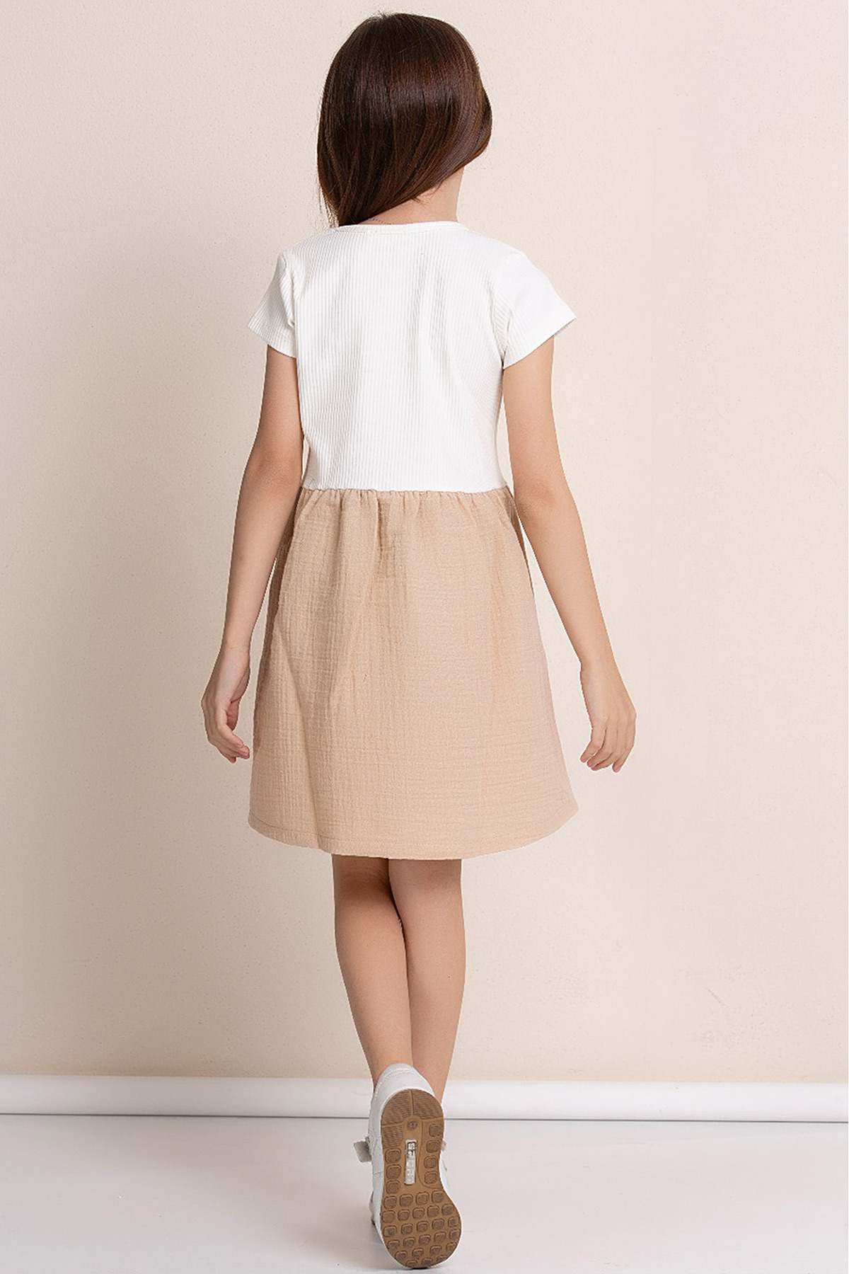 Kız Çocuk Fitilli Eteği Keten Elbise - 7493 (3-7 Yaş)