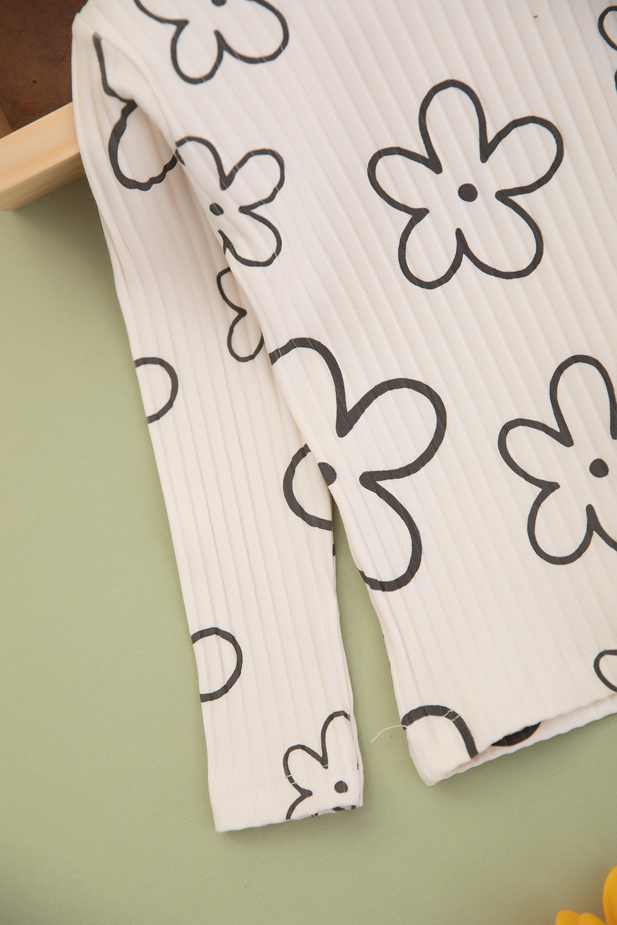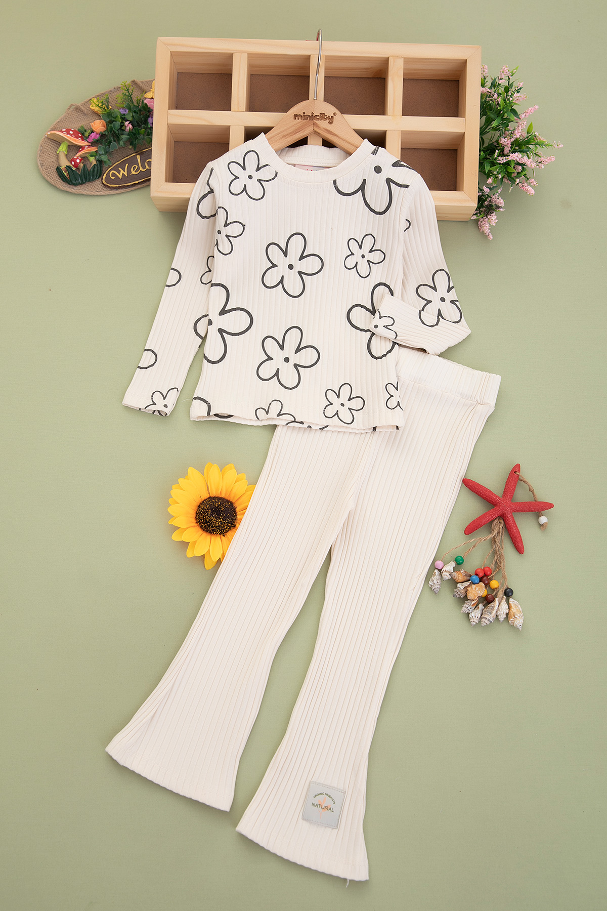 Kız Çocuk Fitilli Papatya Baskılı Takım - 2336 (3-6 Yaş)
