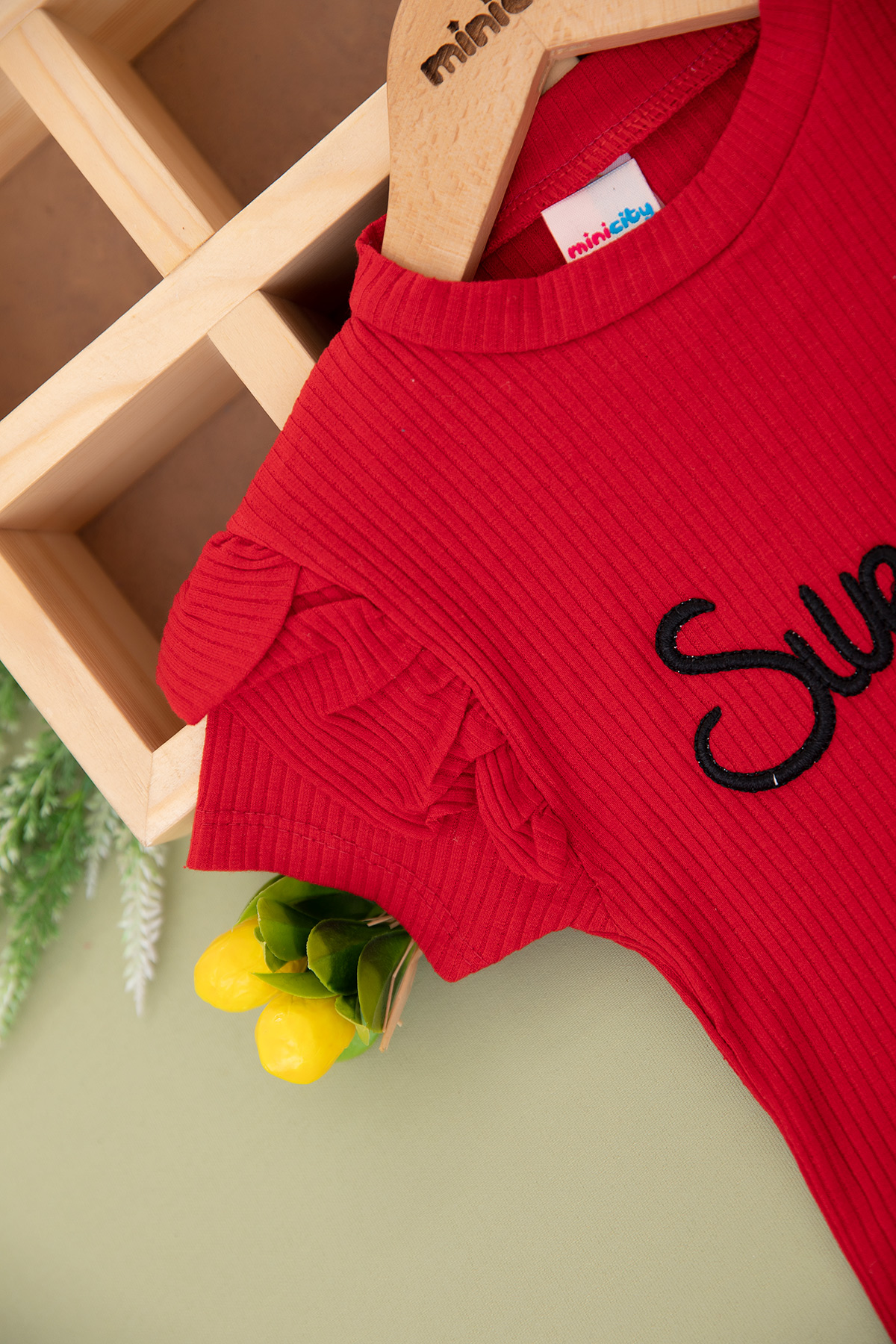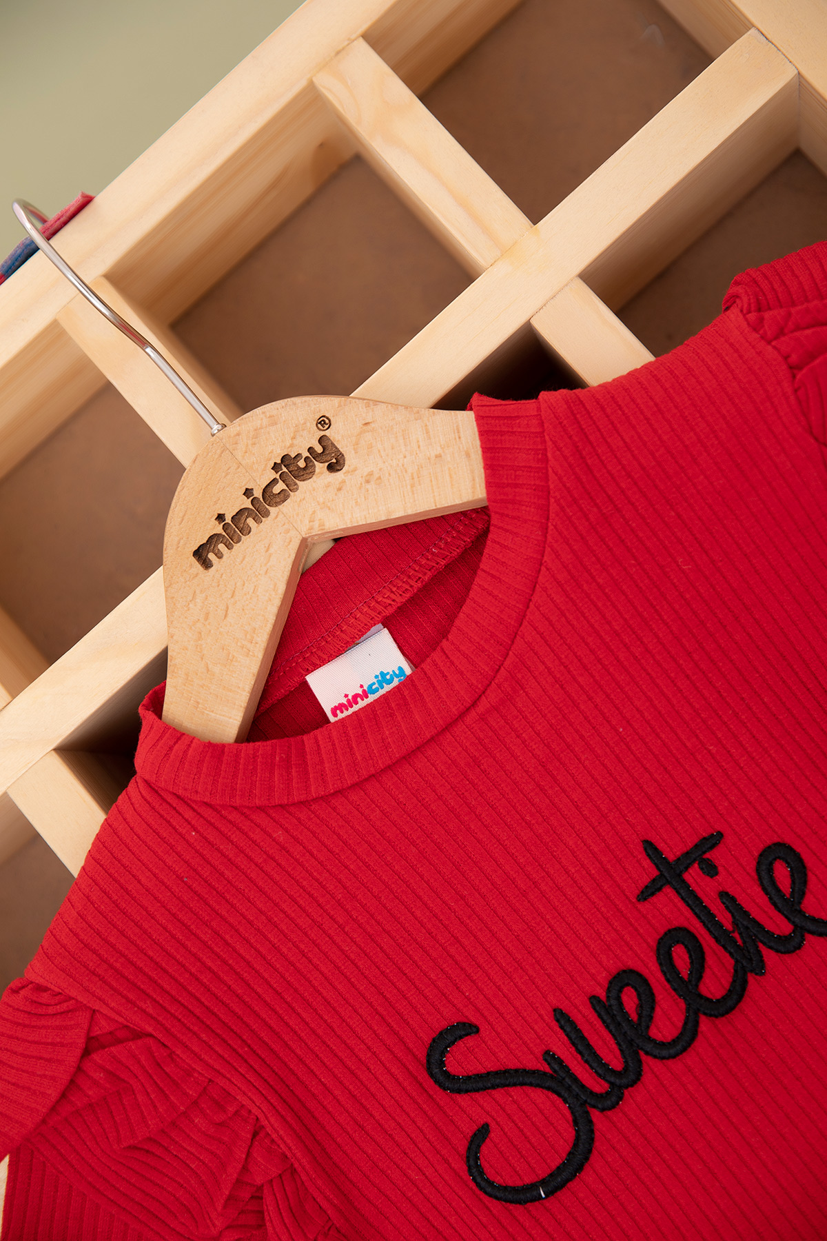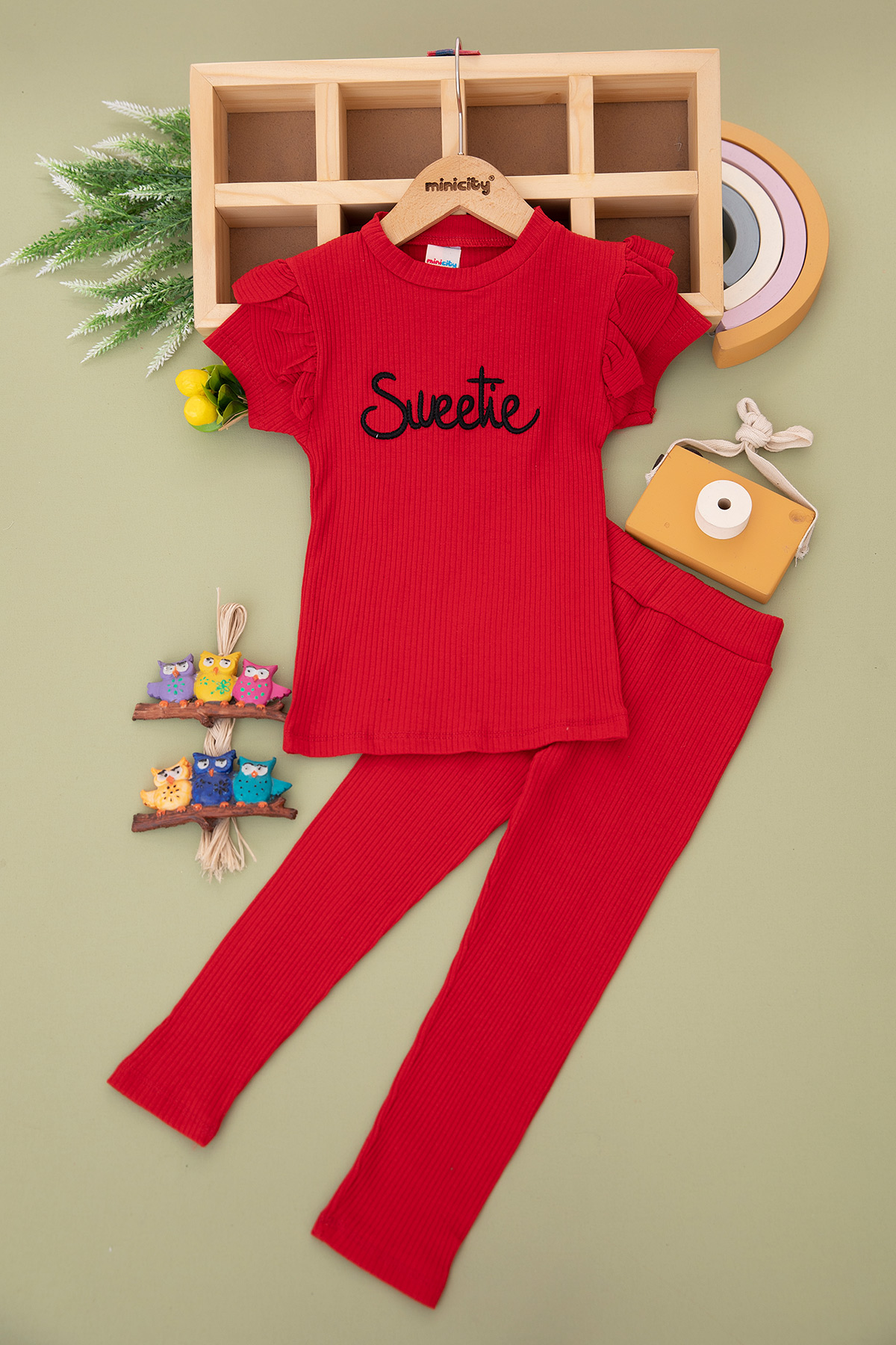 Kız Çocuk Fitilli Sweetie Nakışlı Taytlı Takım (3-7 Yaş)