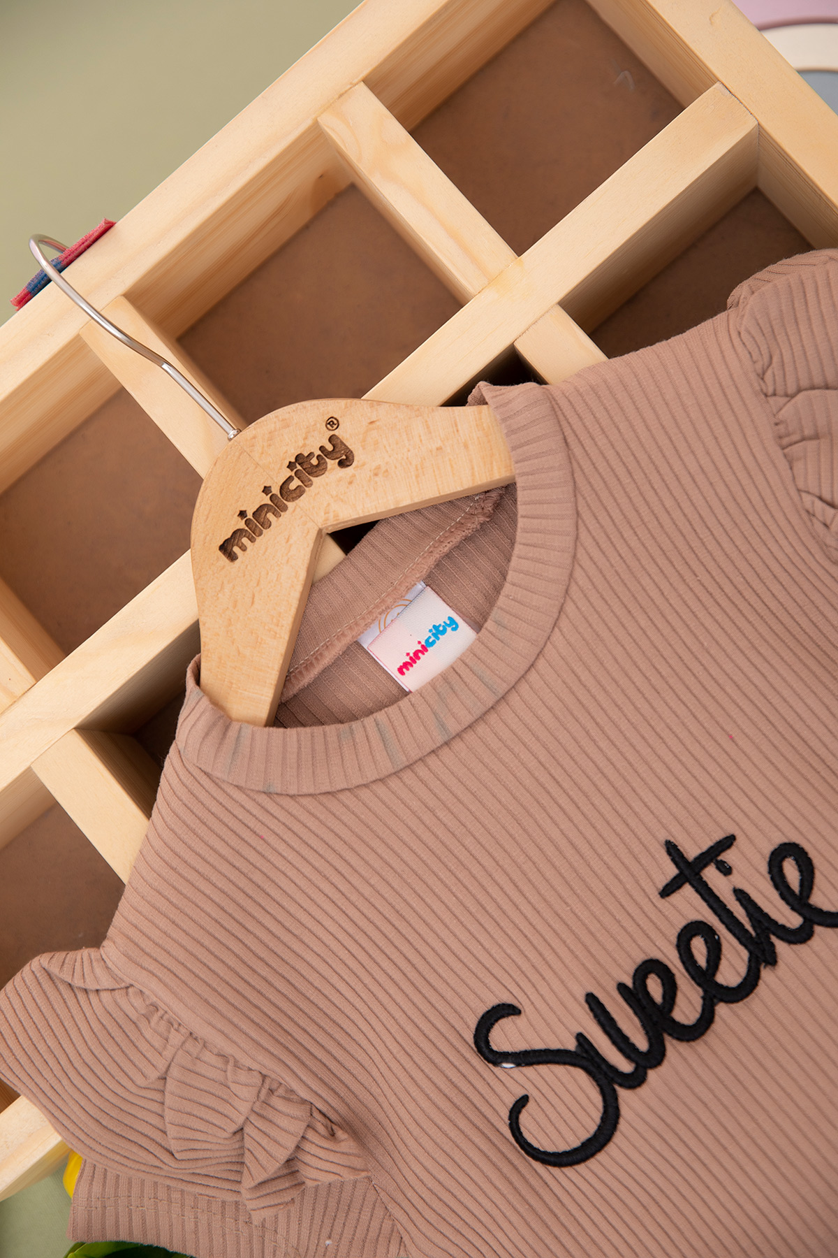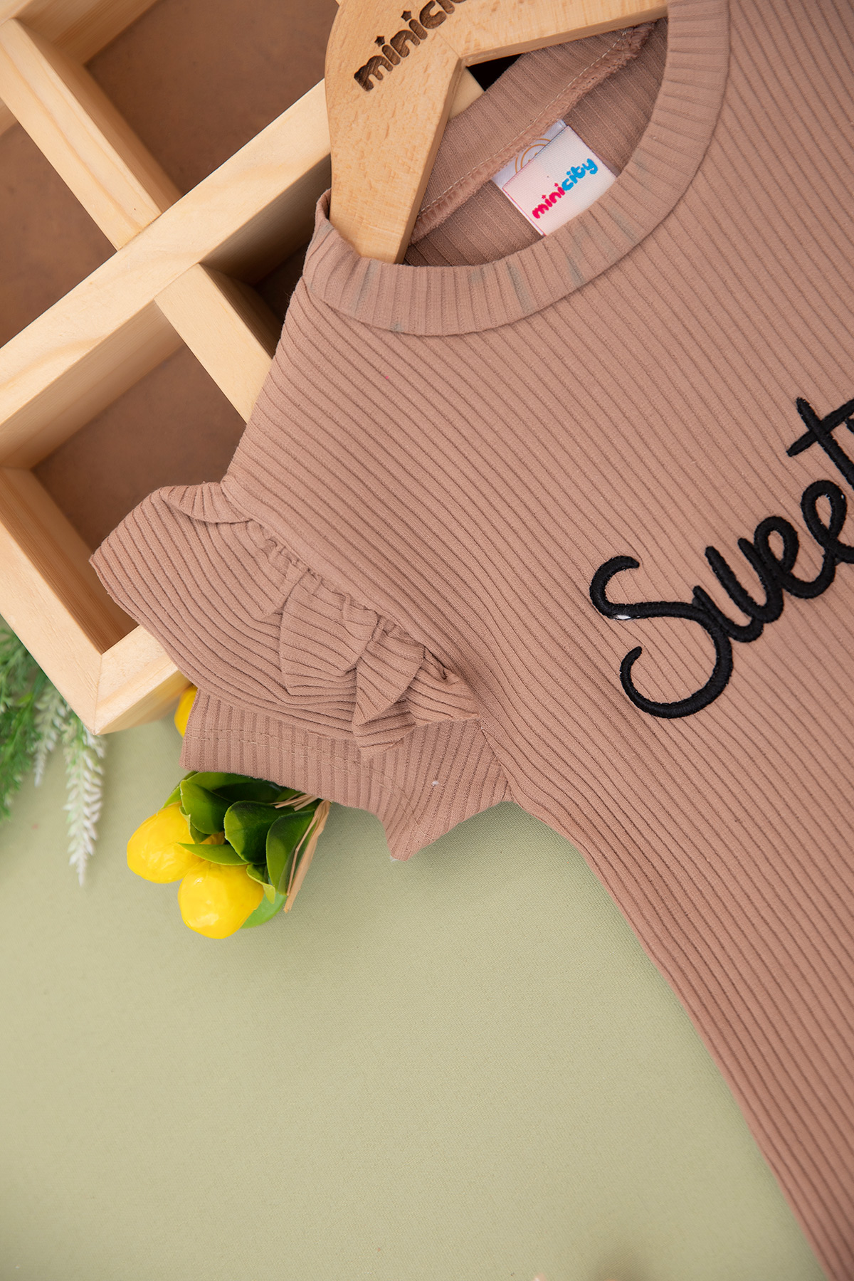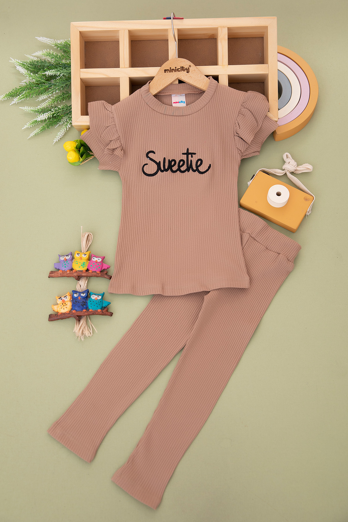 Kız Çocuk Fitilli Sweetie Nakışlı Taytlı Takım (3-7 Yaş)