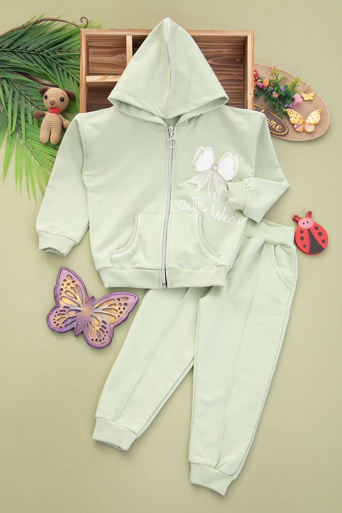 Kız Çocuk Fiyonk Aksesuarlı Fermuarlı Takım - 115 (3-7 Yaş)