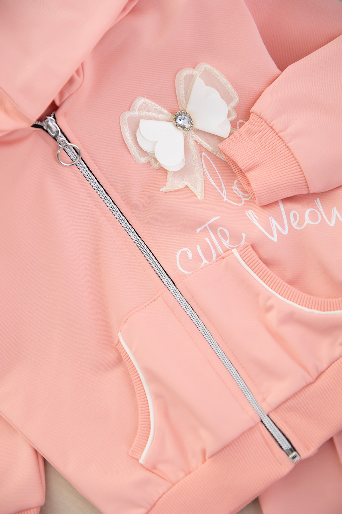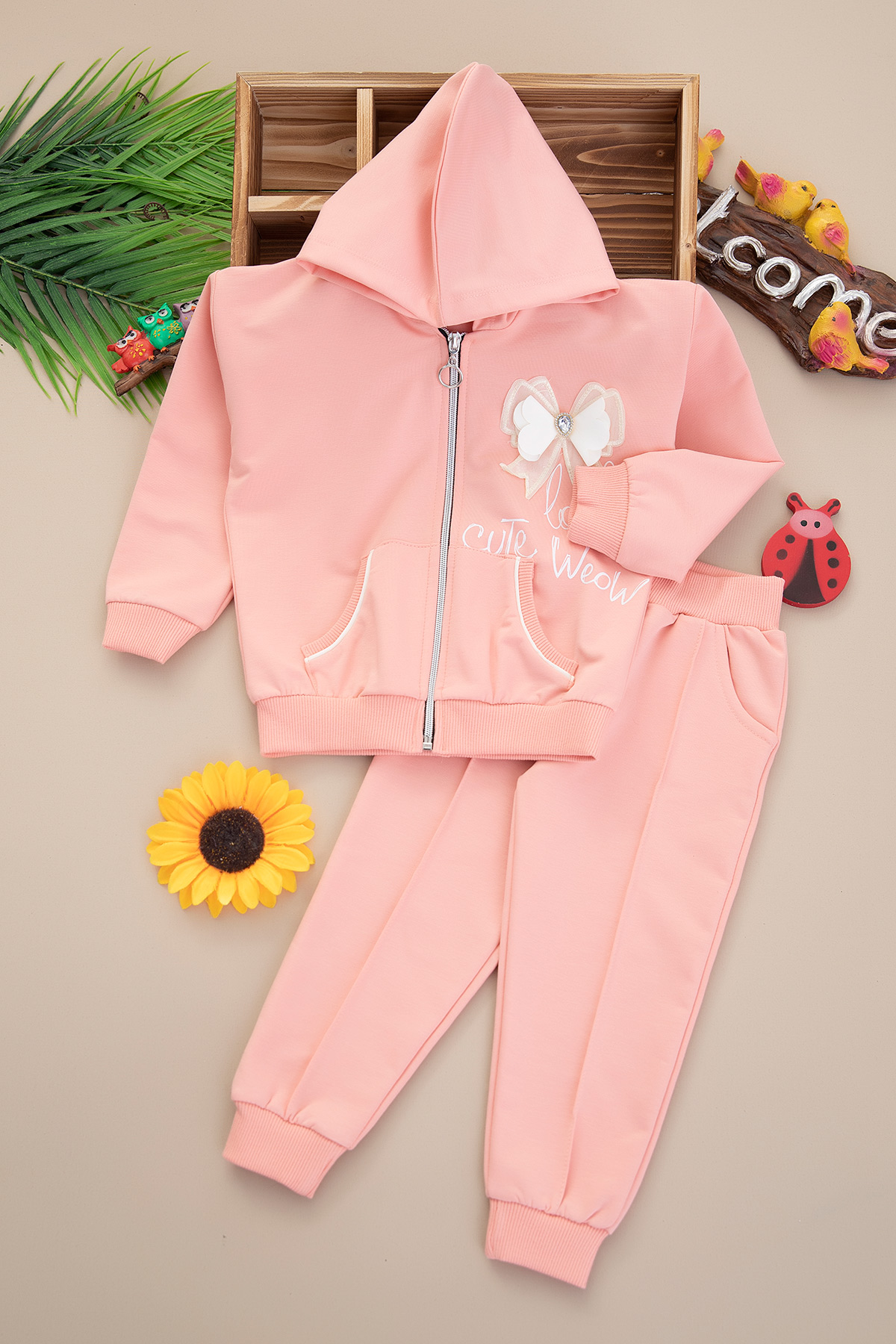 Kız Çocuk Fiyonk Aksesuarlı Fermuarlı Takım - 115 (3-7 Yaş)