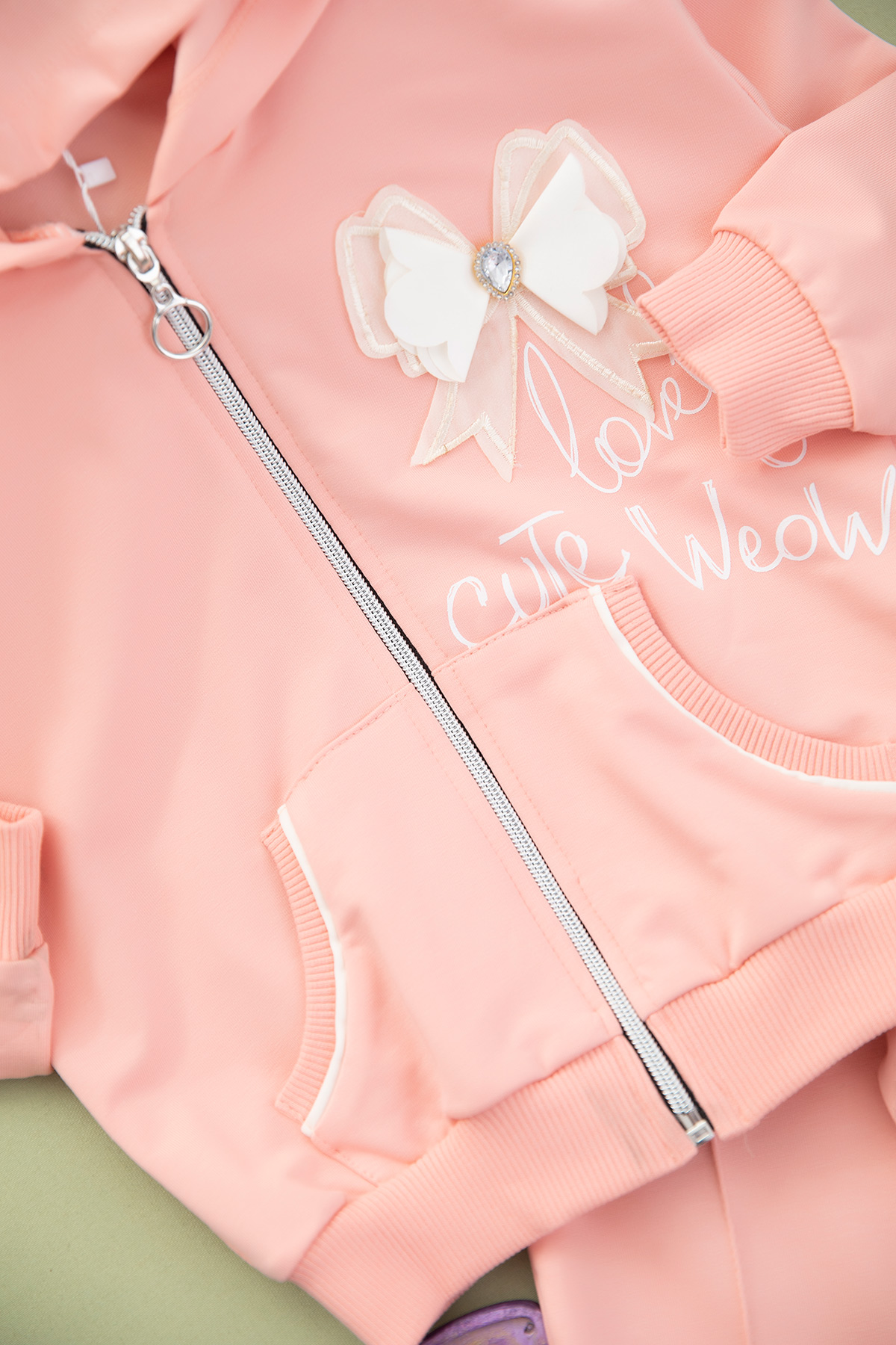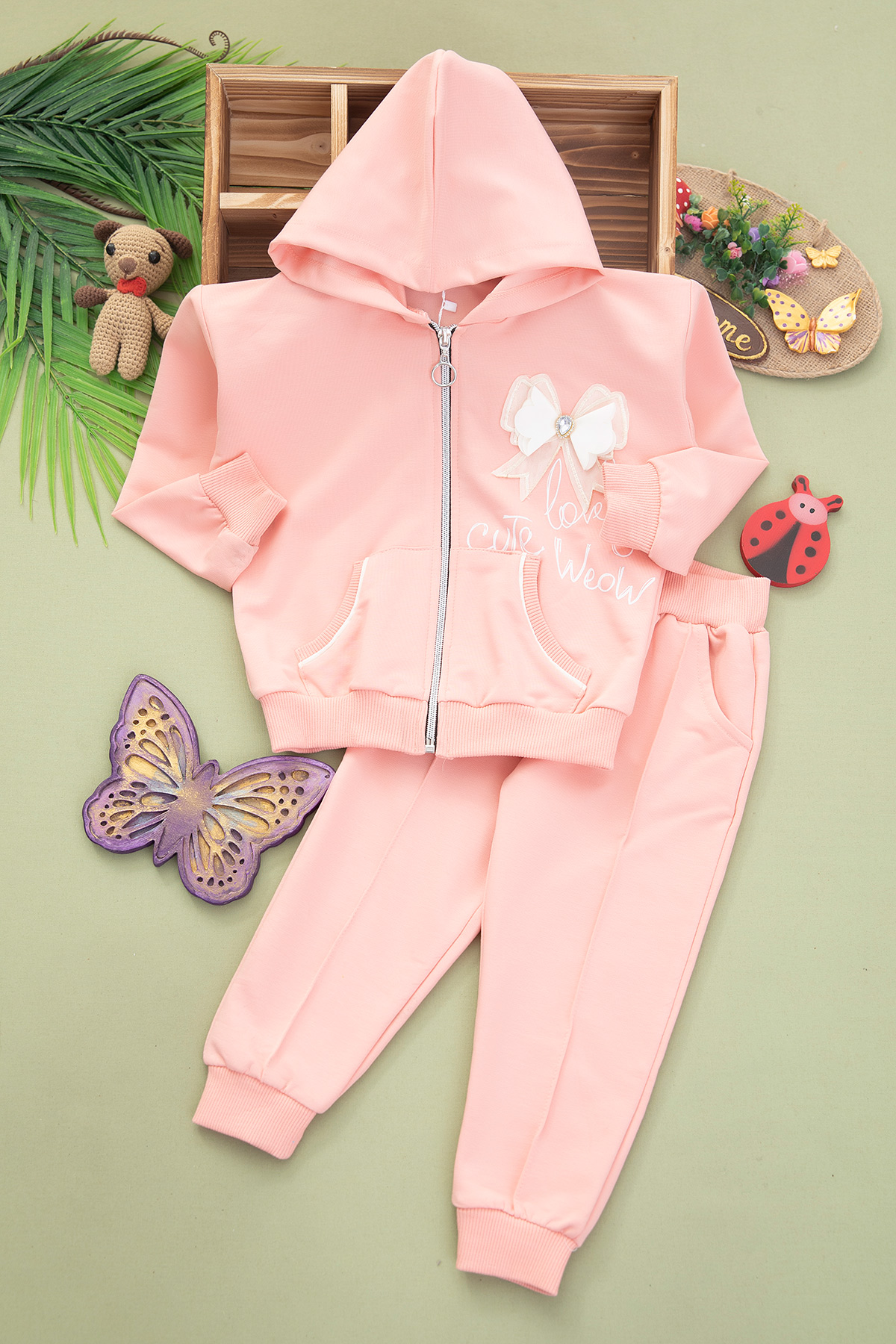 Kız Çocuk Fiyonk Aksesuarlı Fermuarlı Takım - 115 (3-7 Yaş)