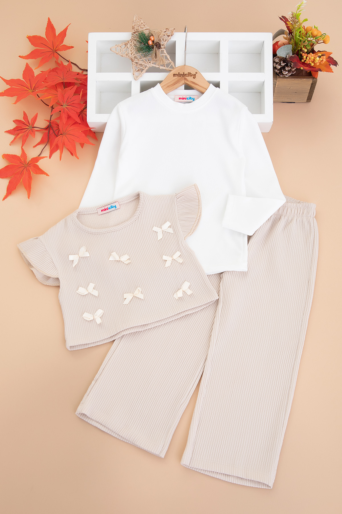 Kız Çocuk Fiyonk Aksesuarlı Takım - 5135 (3-10 Yaş)