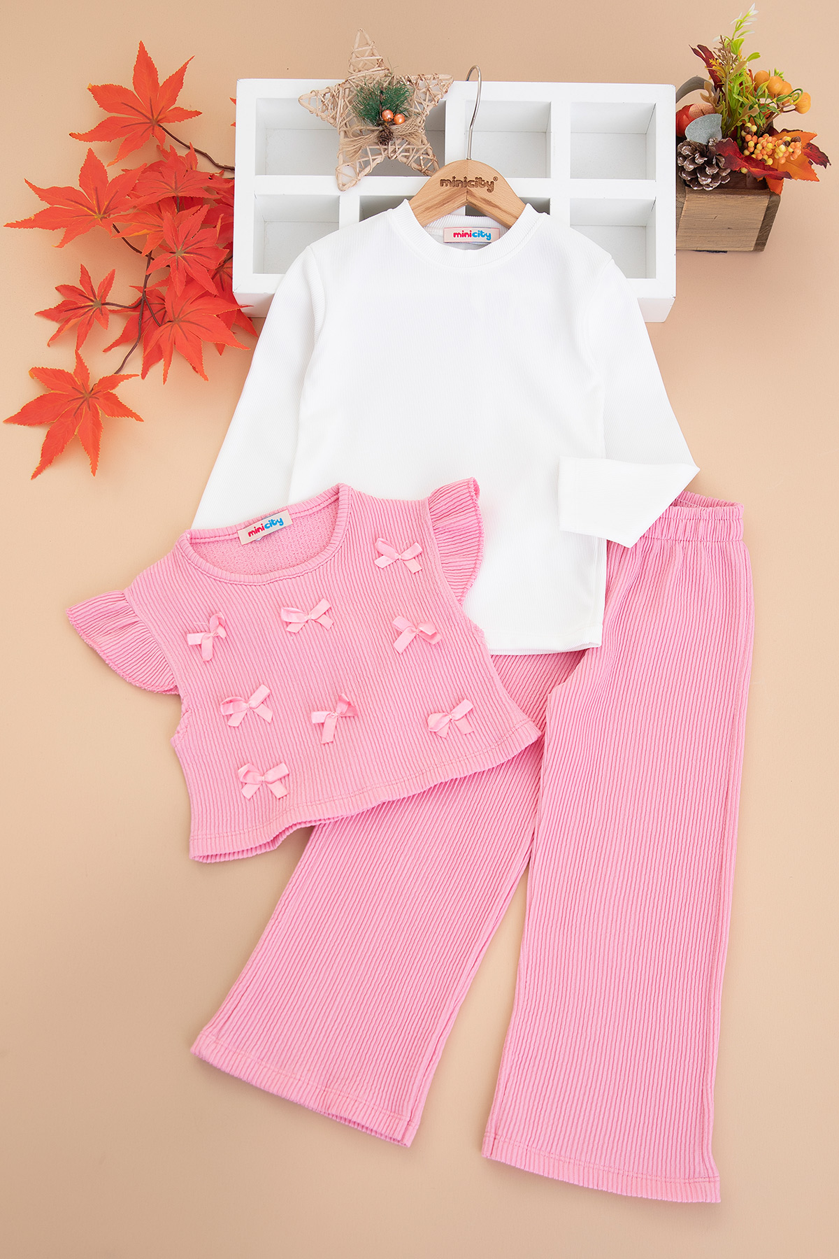 Kız Çocuk Fiyonk Aksesuarlı Takım - 5135 (3-10 Yaş)