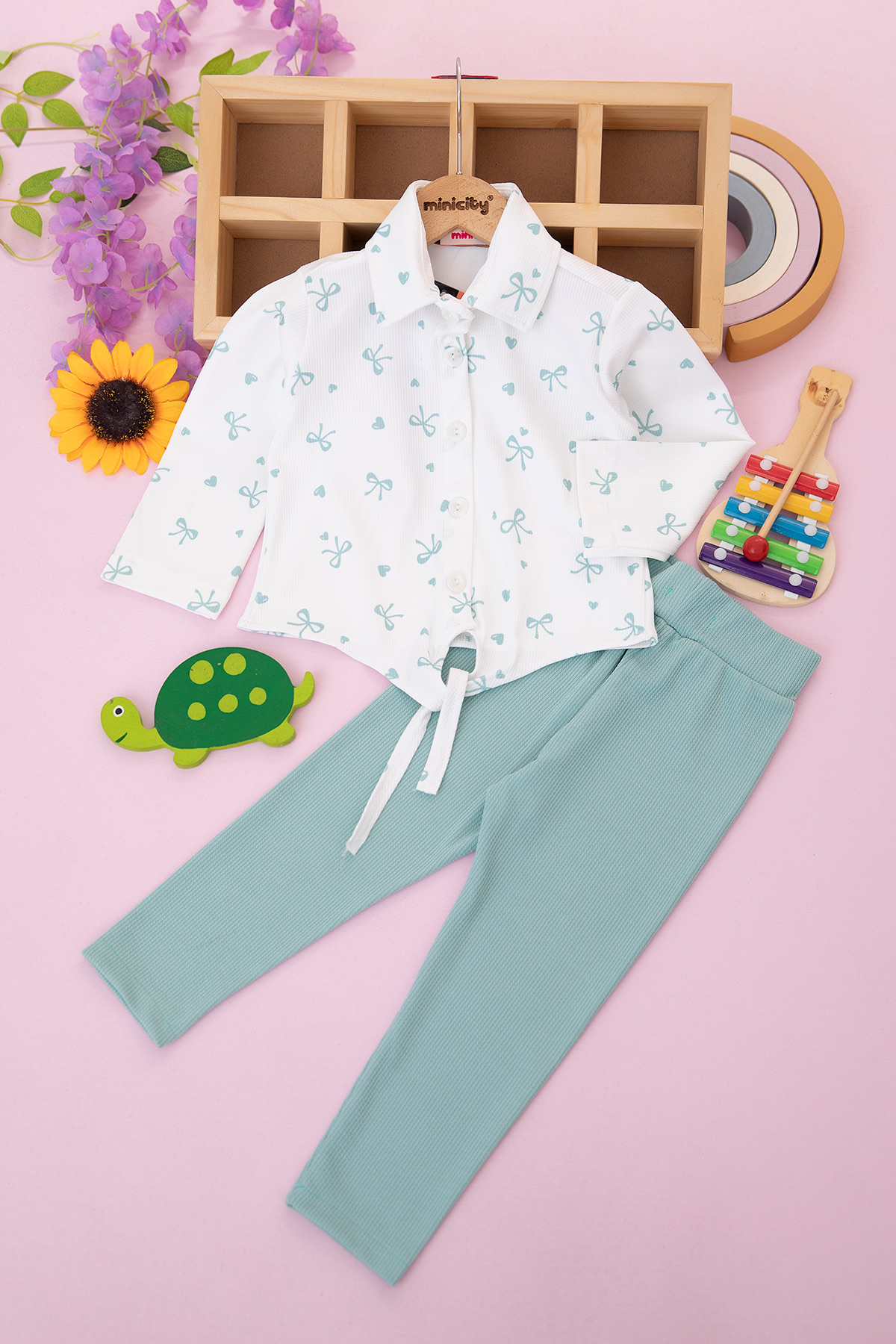 Kız Çocuk Fiyonk Baskılı Bağlamalı Gömlek Takım - 250 (3-6 Yaş)