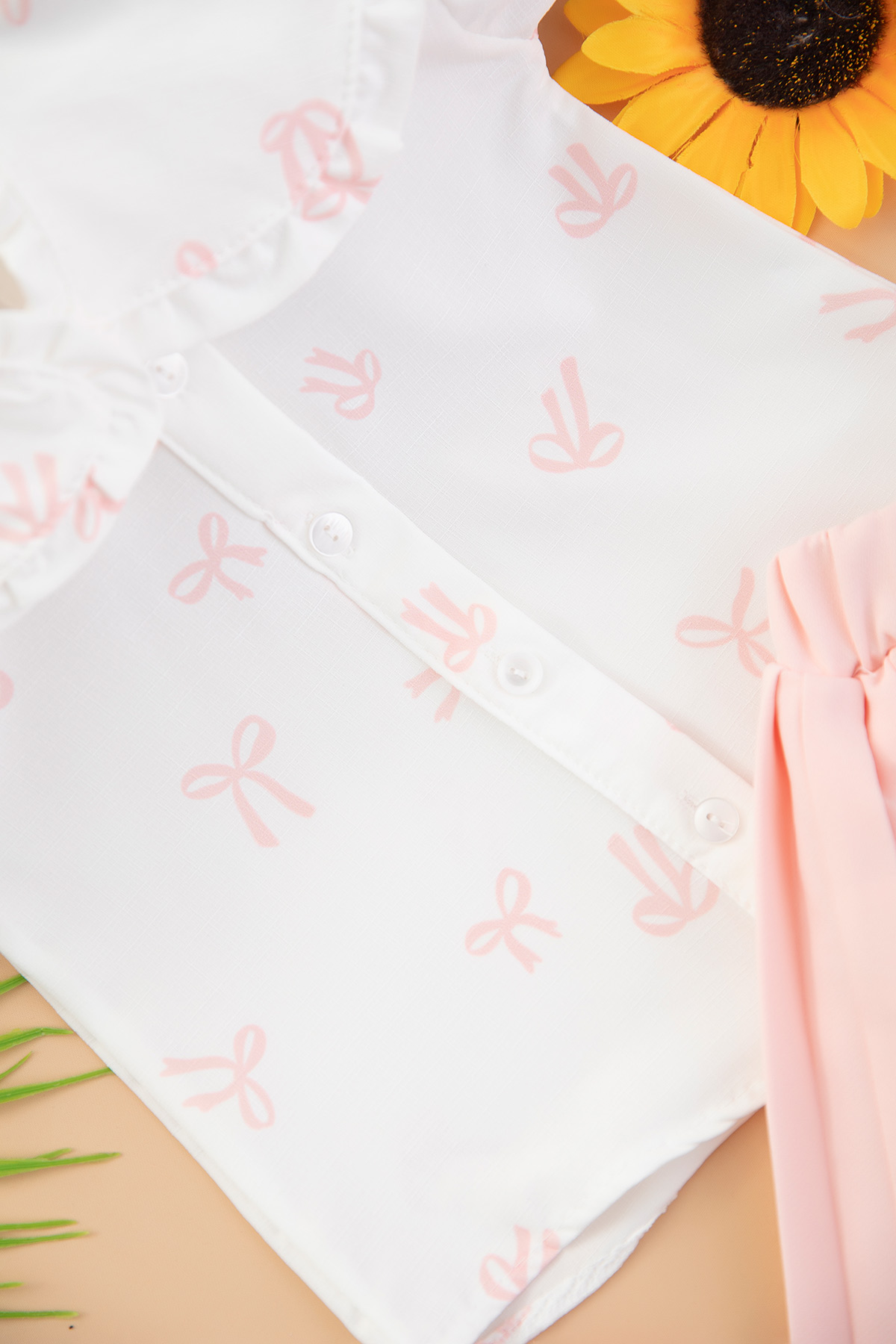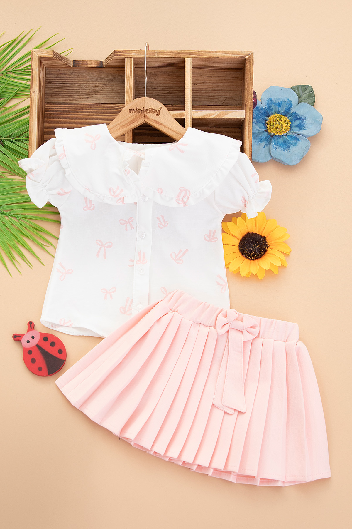 Kız Çocuk Fiyonk Baskılı Etek Takım - 4016 (2-5 Yaş)
