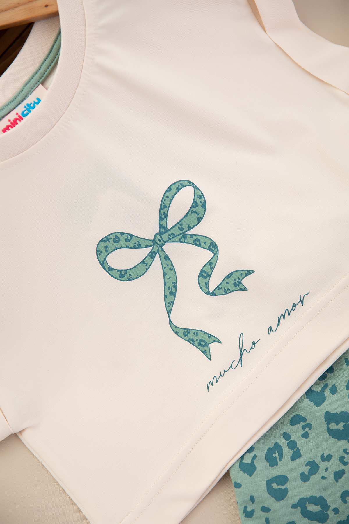 Kız Çocuk Fiyonk Baskılı Kaprili Takım - 7589 (11-14 Yaş)