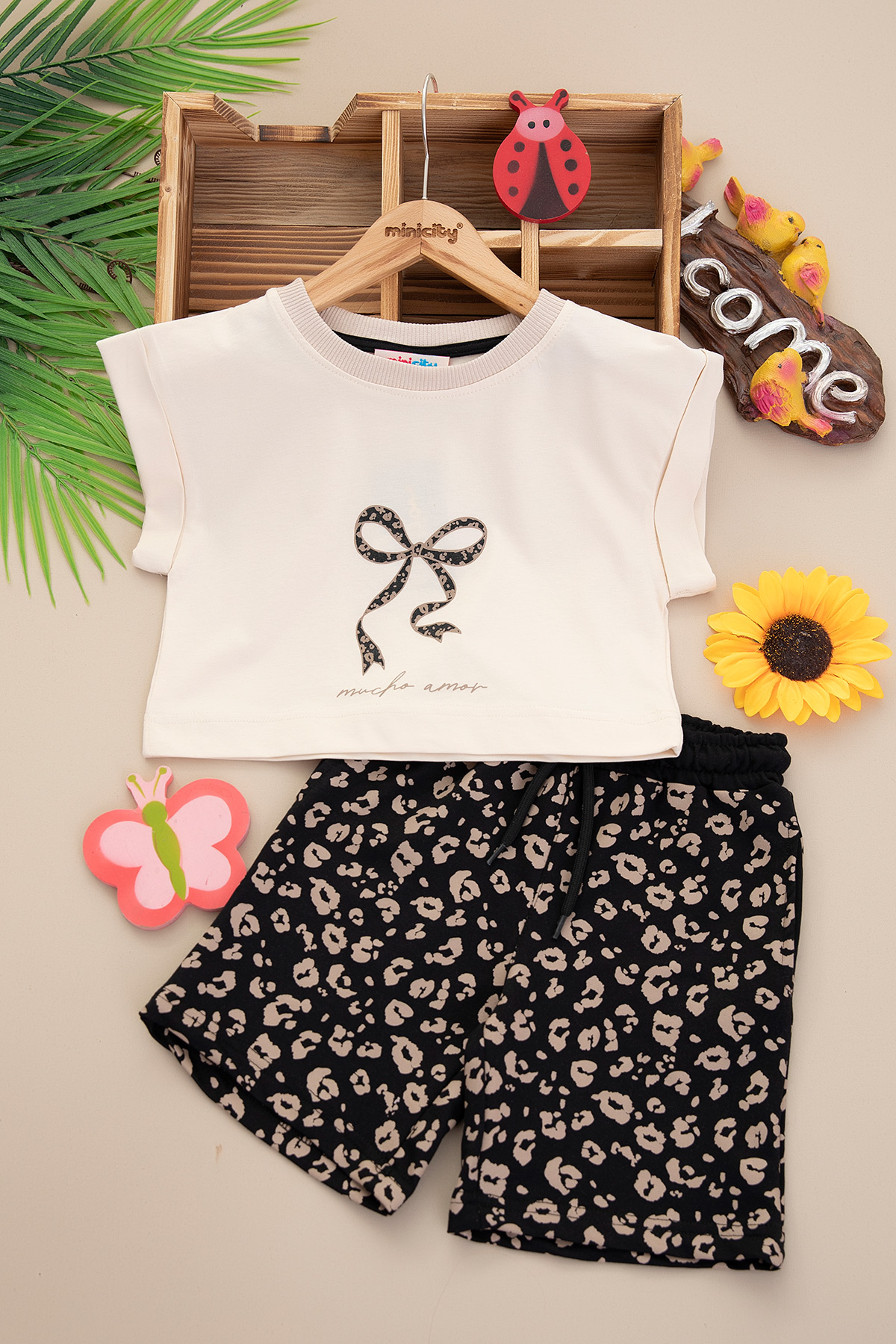 Kız Çocuk Fiyonk Baskılı Kaprili Takım - 7589 (7-10 Yaş)