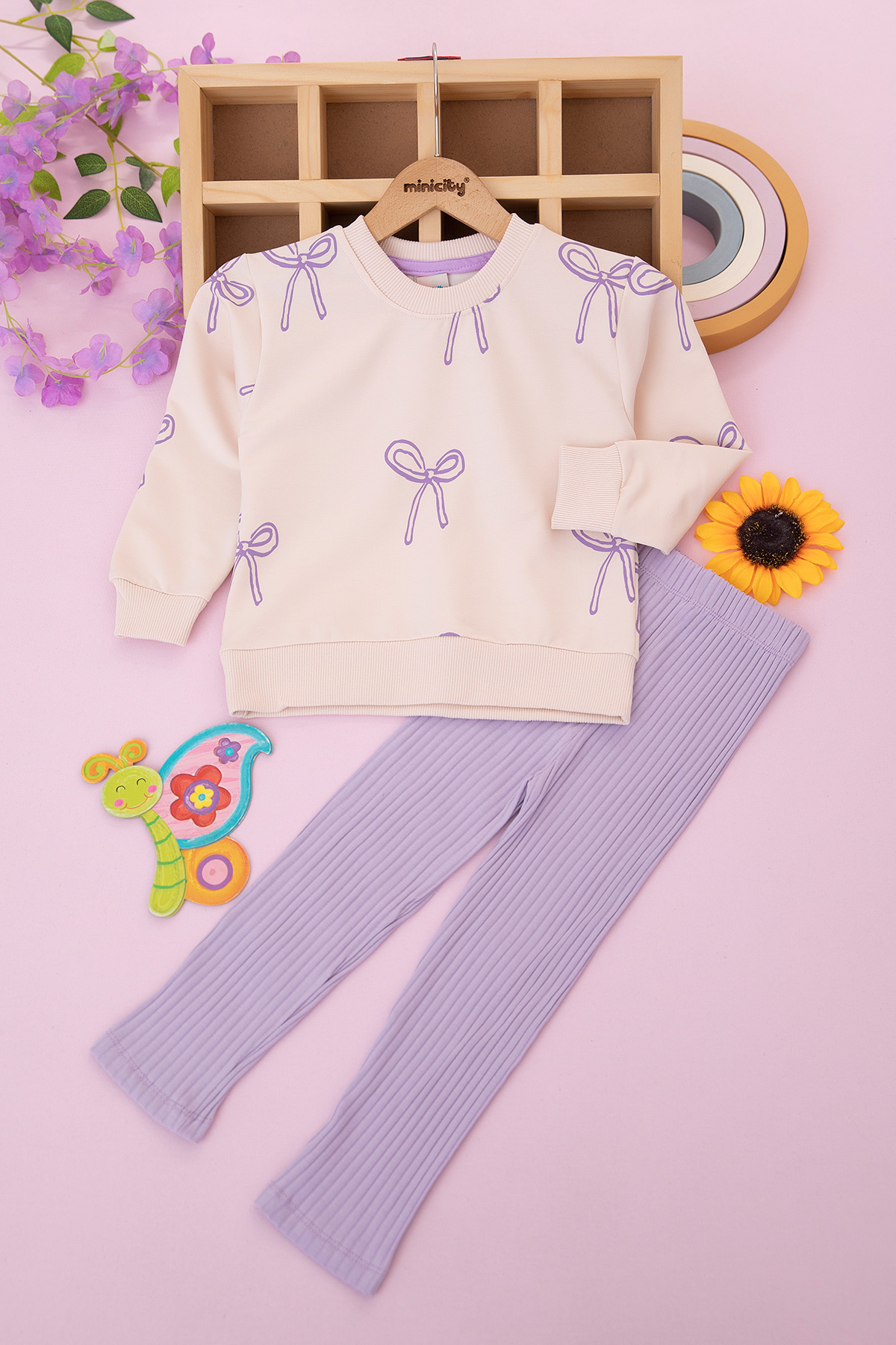Kız Çocuk Fiyonk Baskılı Takım - 2023 (4-12 Yaş)