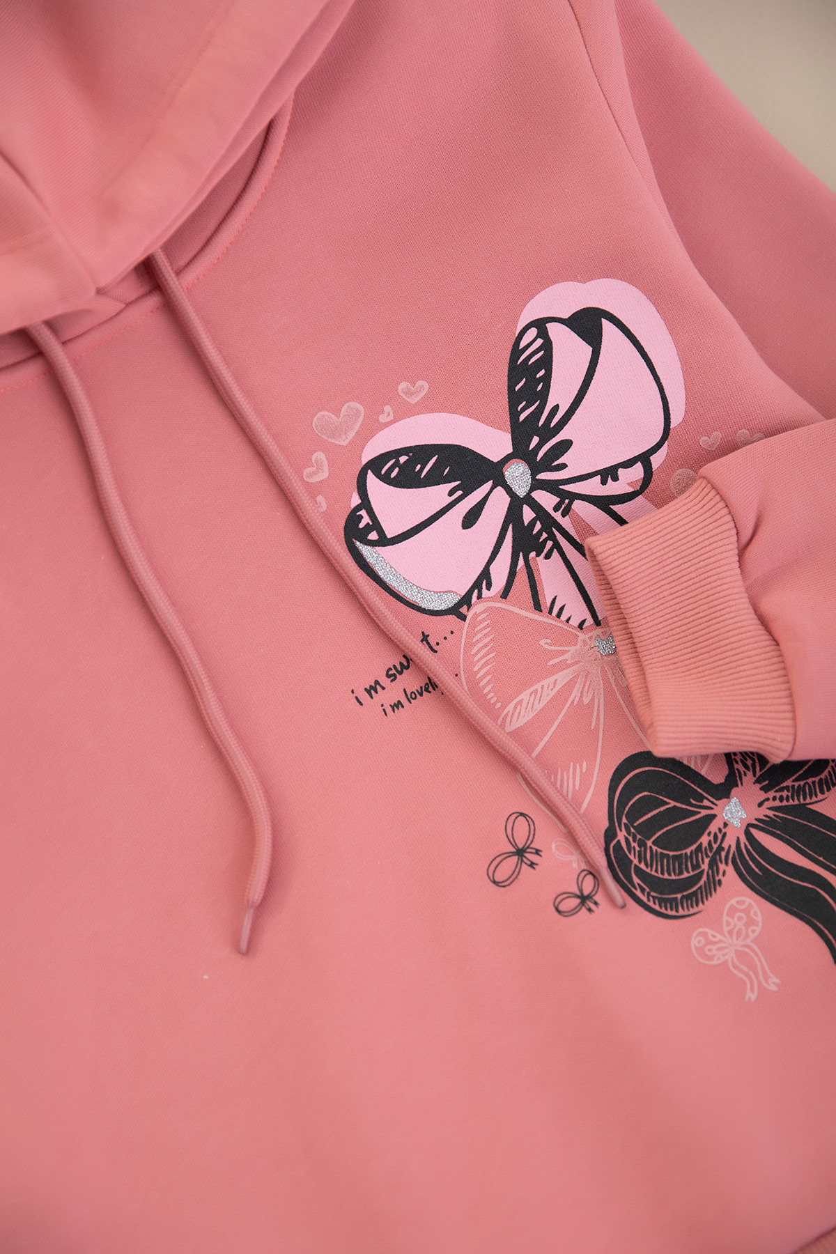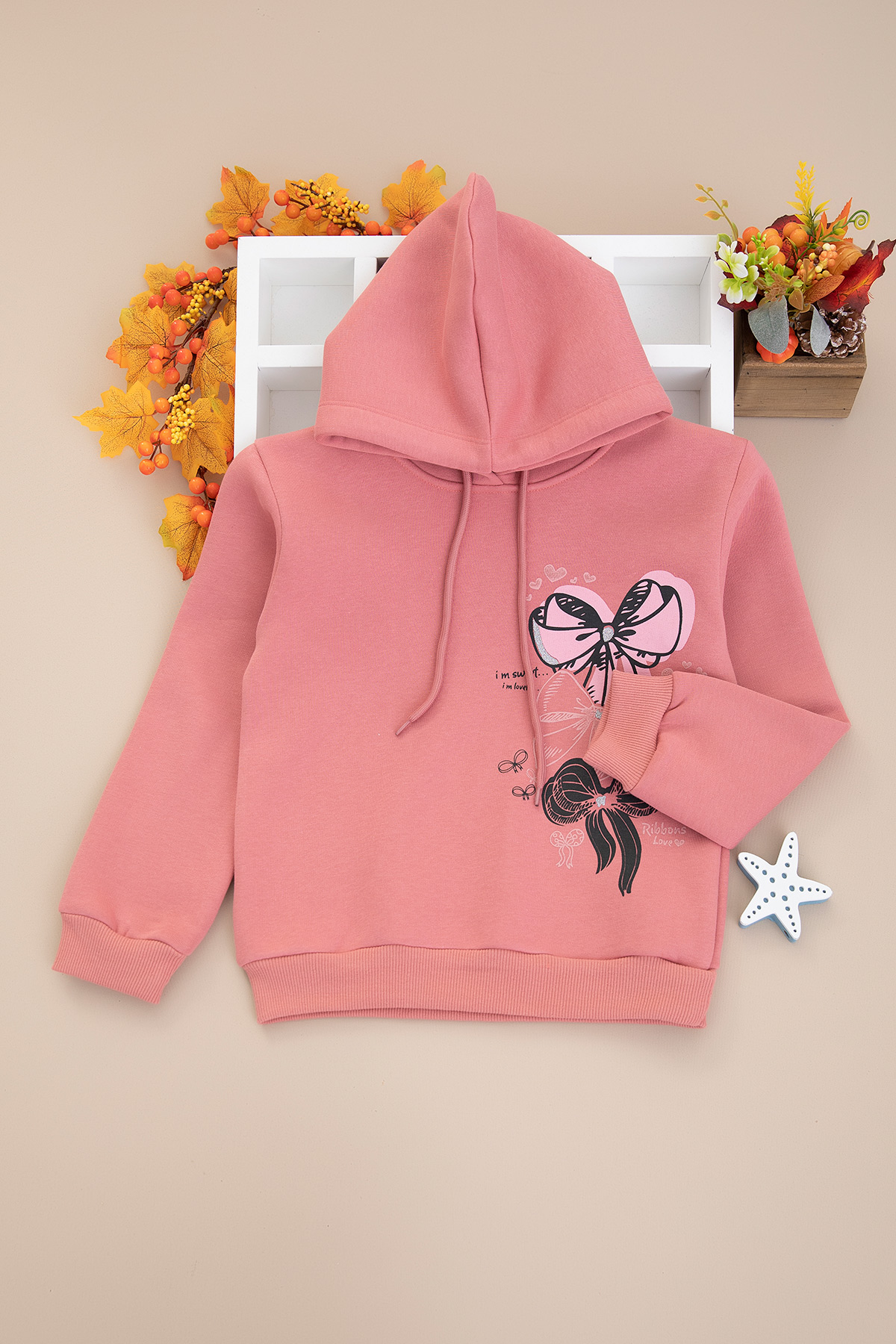 Kız Çocuk Fiyonk Baskılı Üçip Sweat - 735158 (8-12 Yaş)
