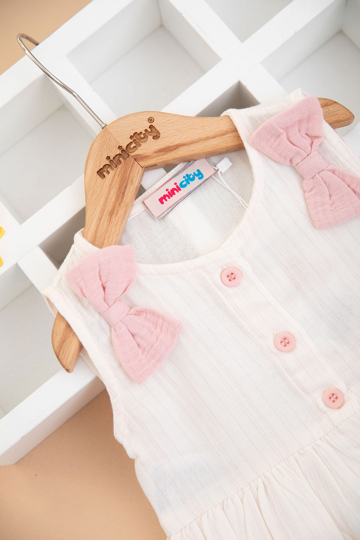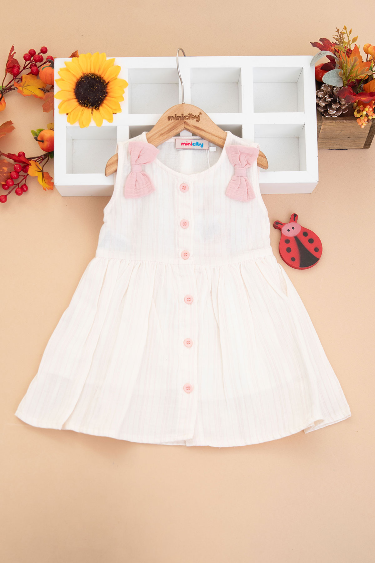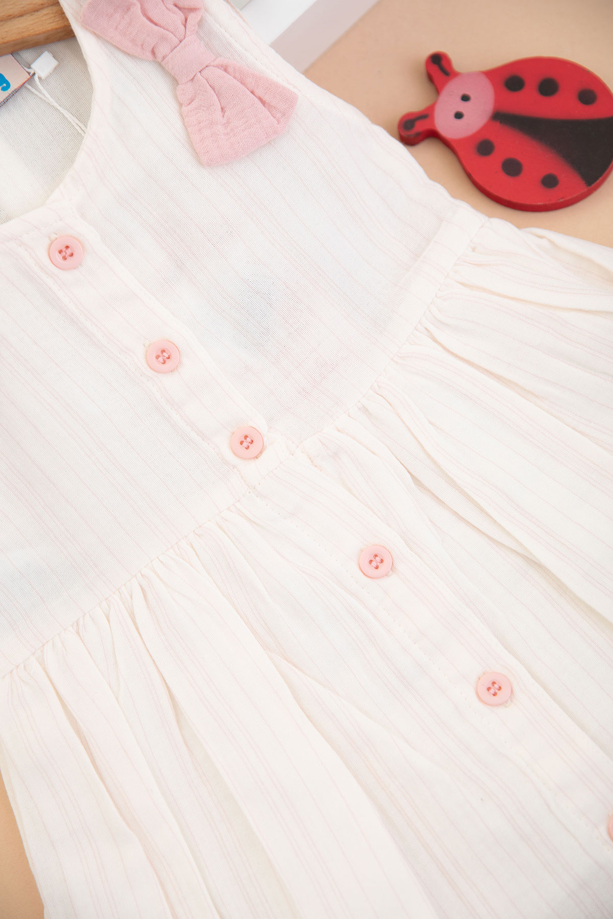 Kız Çocuk Fiyonk Çizgili Müslin Elbise - 1785 (1-4 Yaş)
