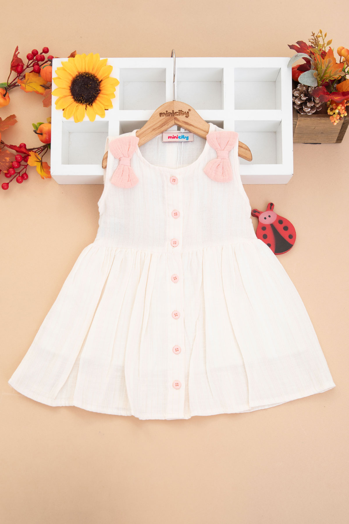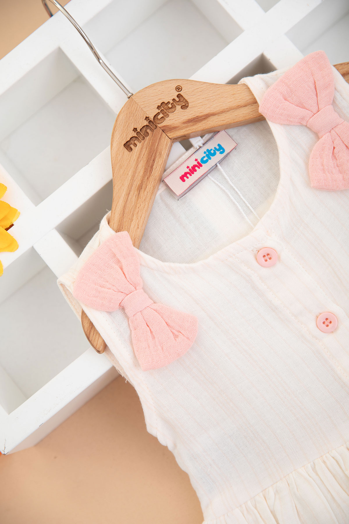 Kız Çocuk Fiyonk Çizgili Müslin Elbise - 1785 (1-4 Yaş)