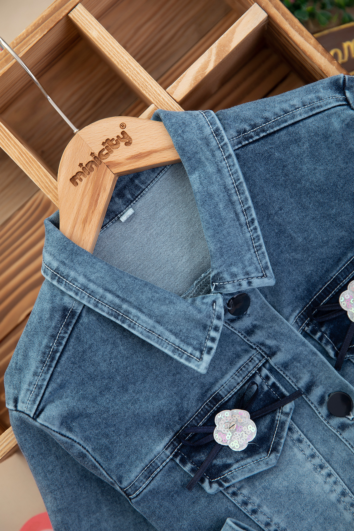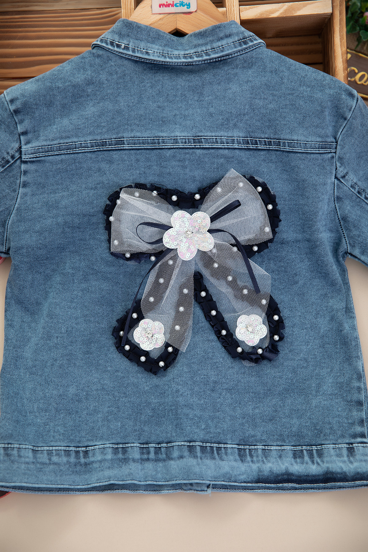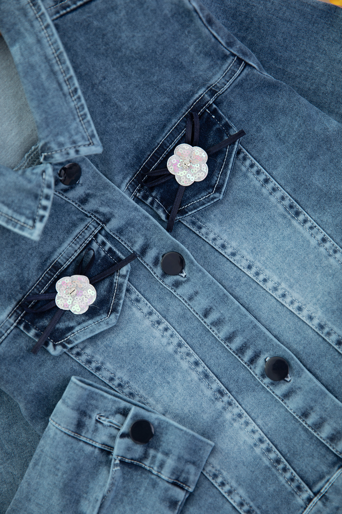 Kız Çocuk Fiyonk İşlemeli Kot Mont - 1417 (6-9 Yaş)