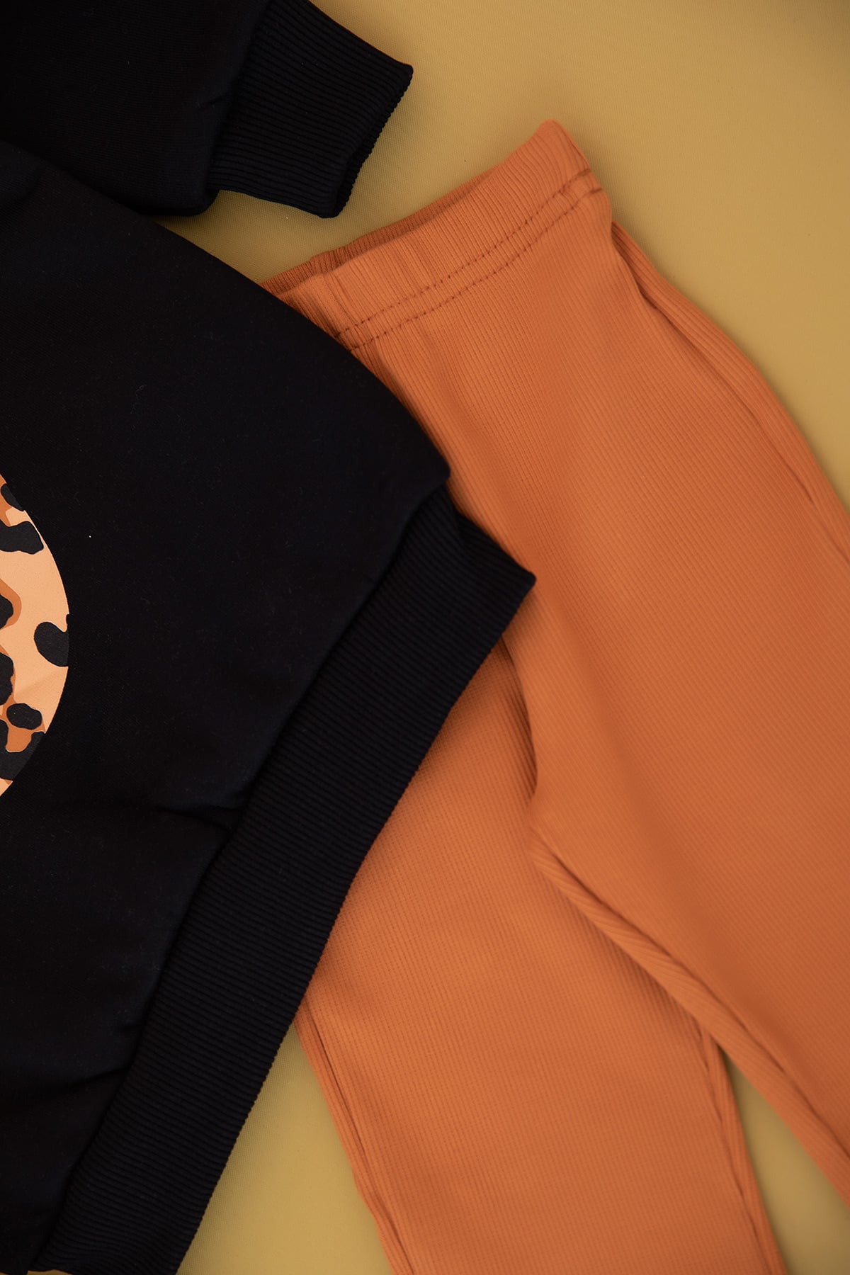 Kız Çocuk Fiyonk Leopar Üçip Takım - K-6498 (3-10 Yaş)