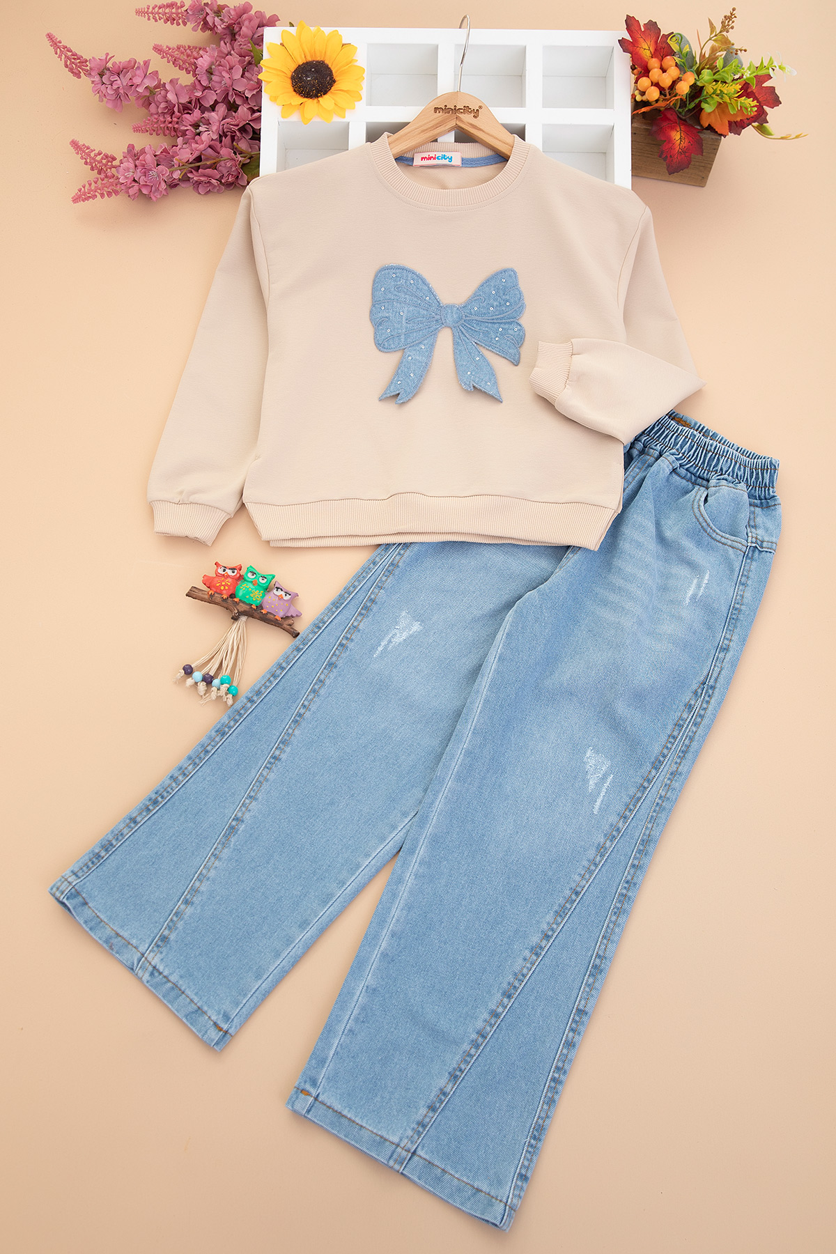 Kız Çocuk Fiyonk Nakış Sweat Takım - 1771 (9-12 Yaş)