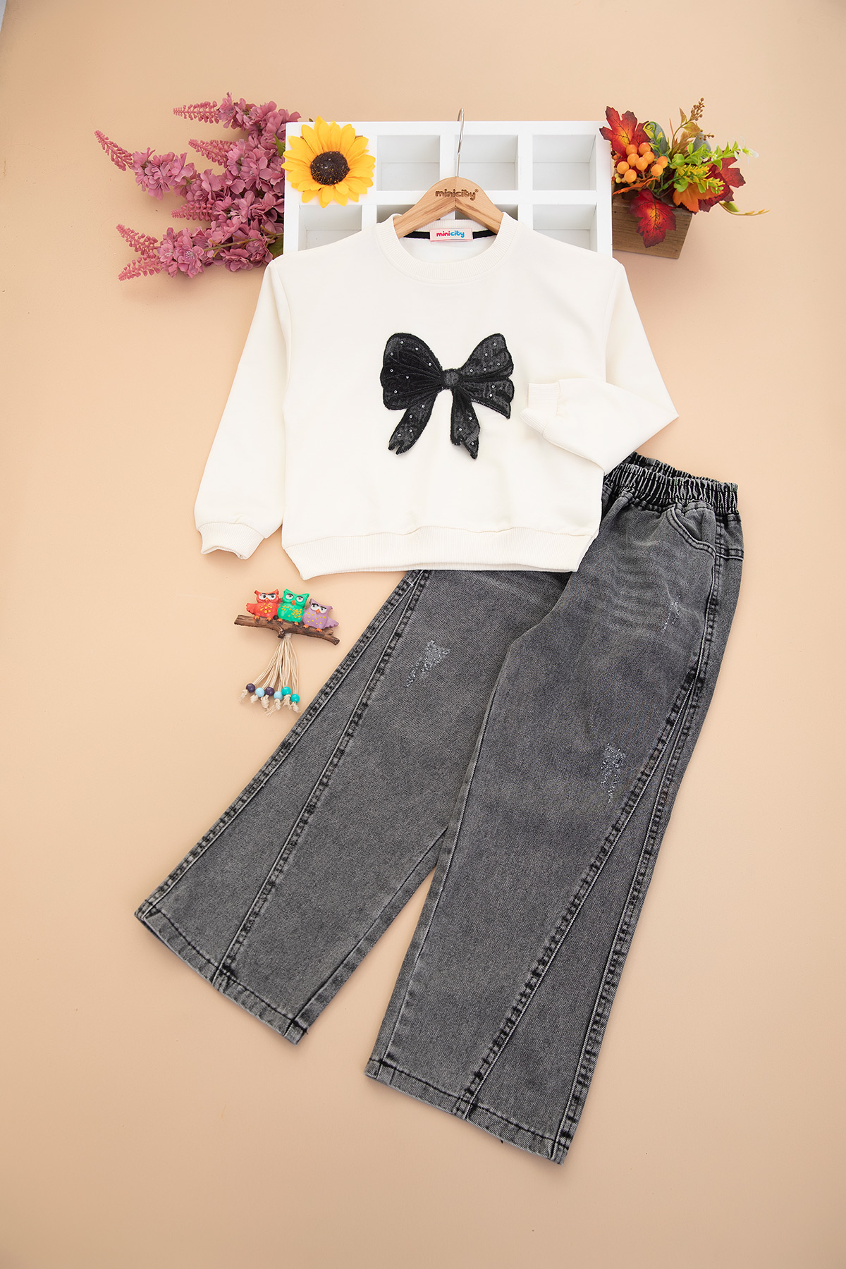 Kız Çocuk Fiyonk Nakış Sweat Takım - 1771 (9-12 Yaş)