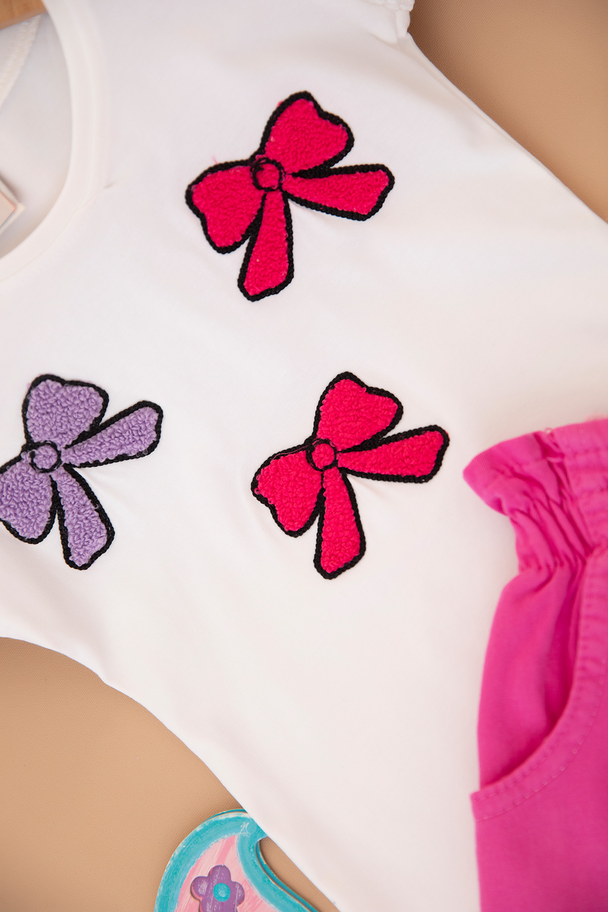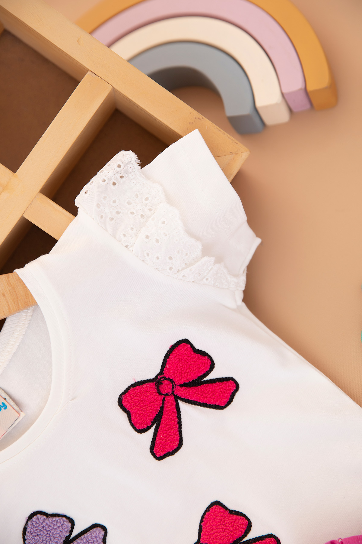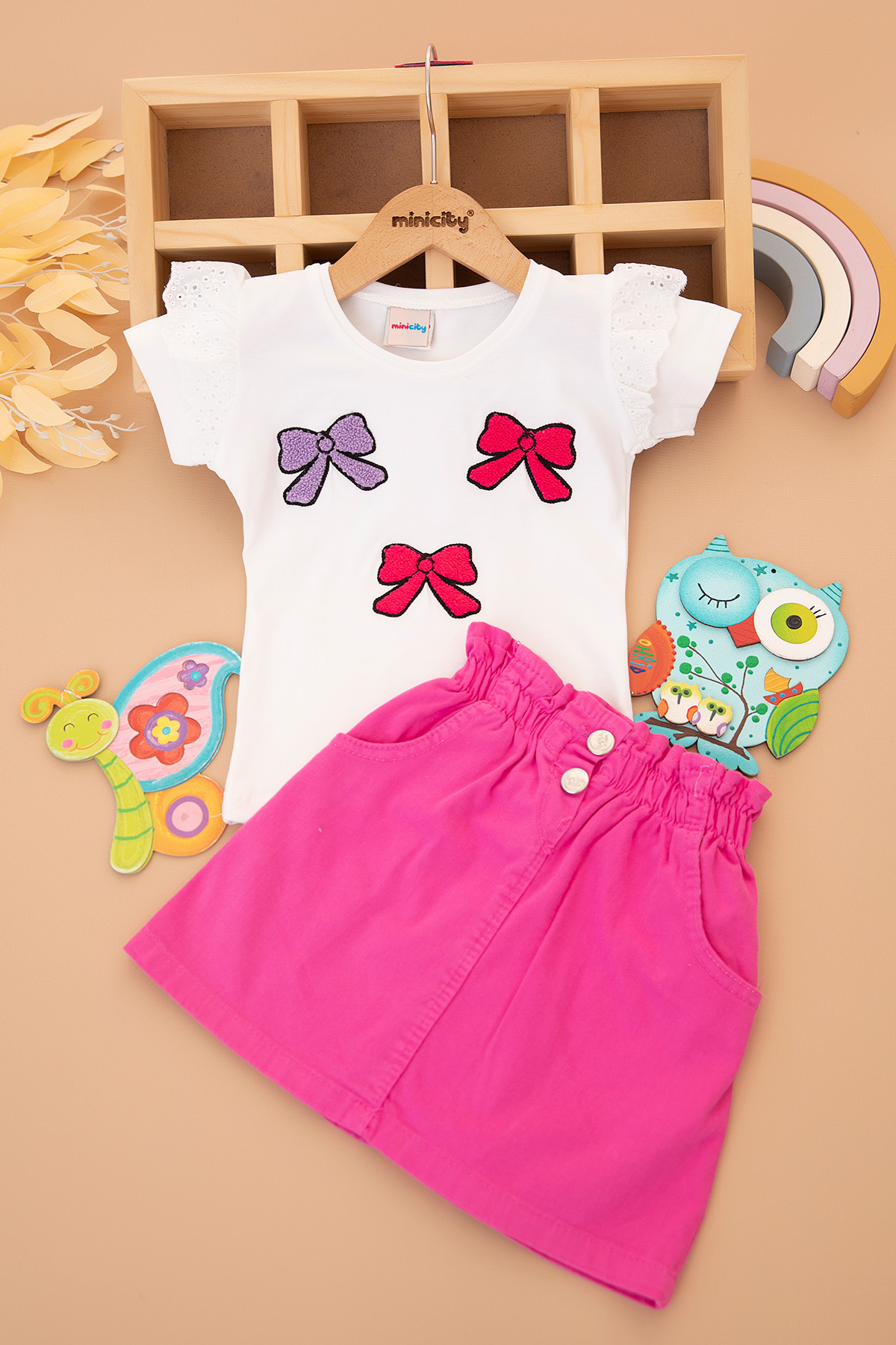 Kız Çocuk Fiyonk Nakışlı Badi Etek Takım - 2512 (3-7 Yaş)