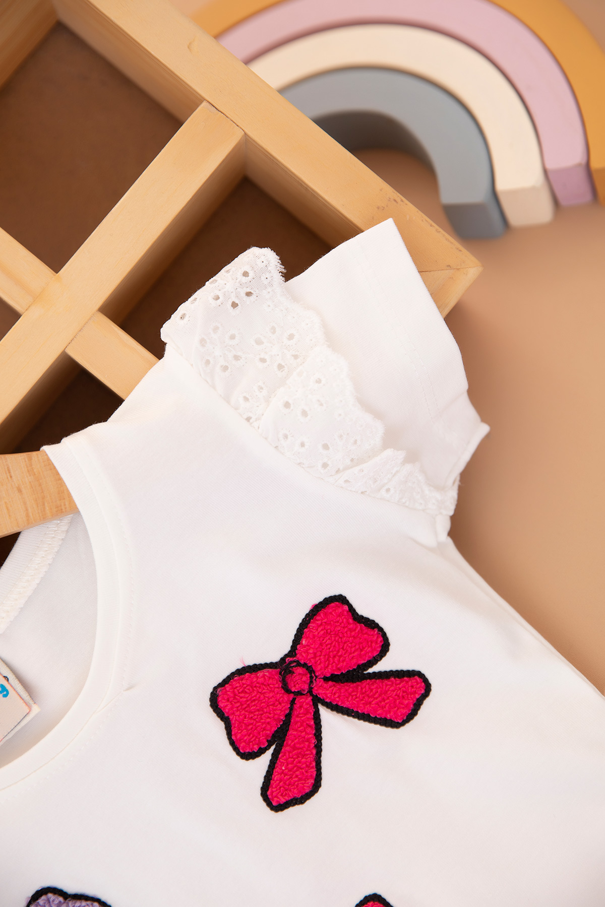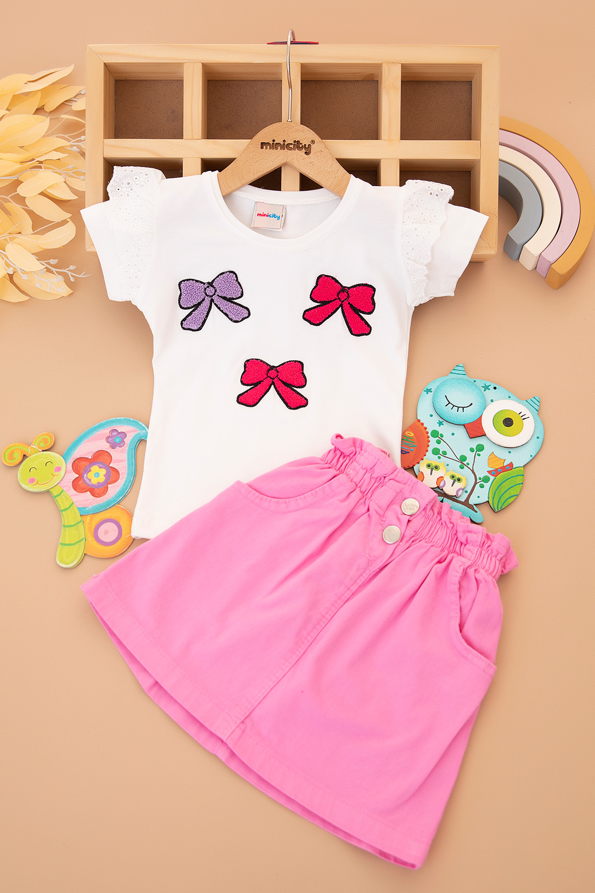 Kız Çocuk Fiyonk Nakışlı Badi Etek Takım - 2512 (3-7 Yaş)
