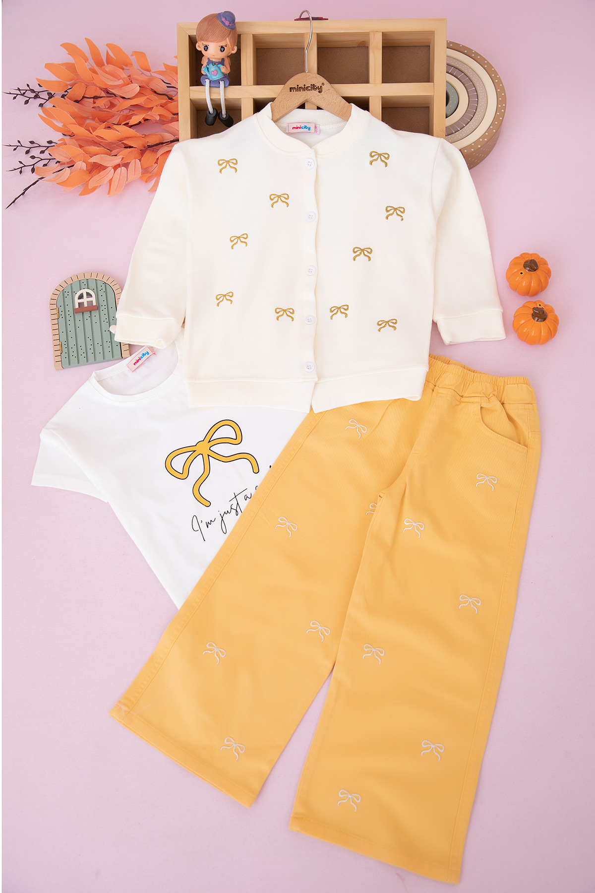 Kız Çocuk Fiyonk Nakışlı Hırkalı Takım - 70620 (5-12 Yaş)