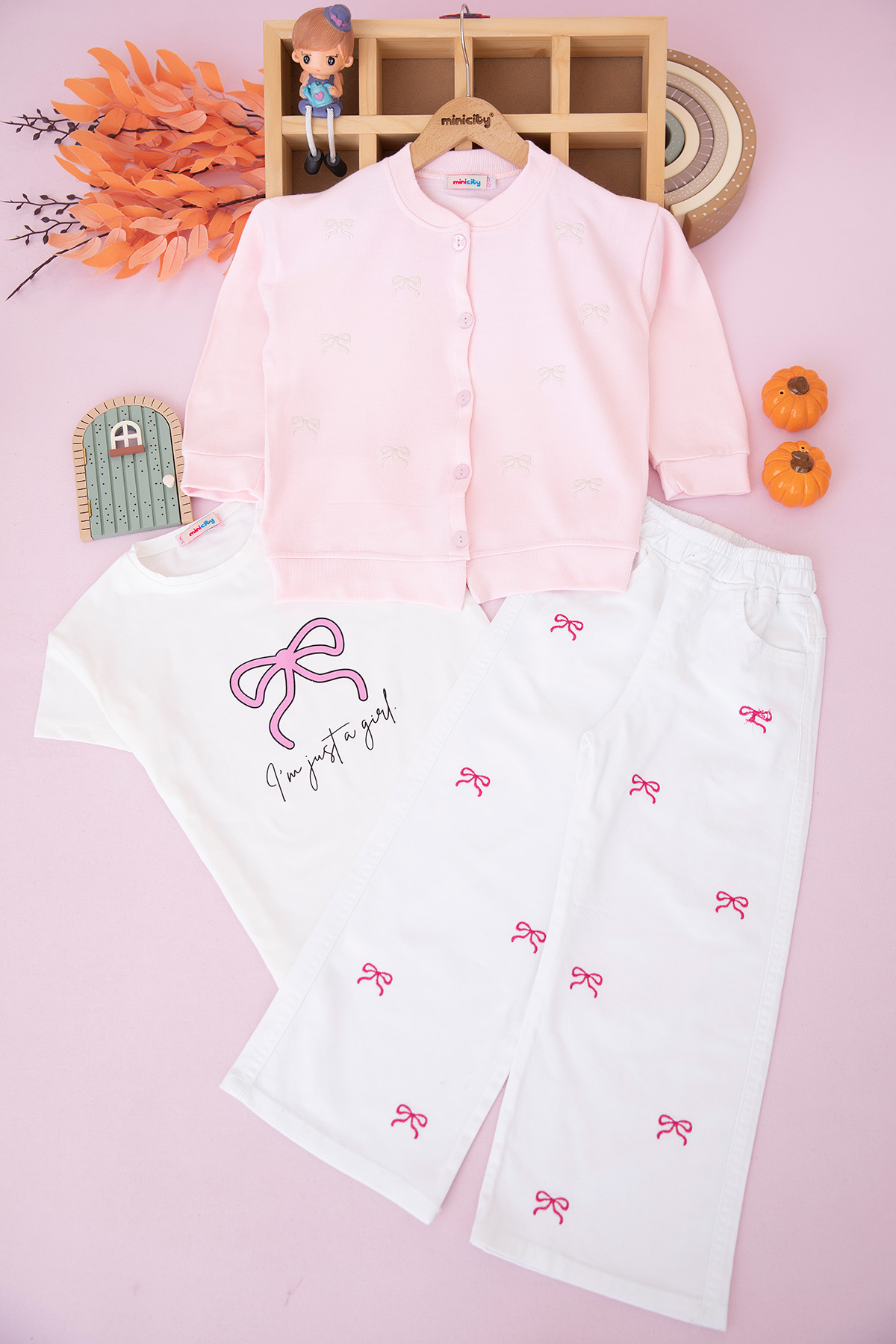 Kız Çocuk Fiyonk Nakışlı Hırkalı Takım - 70620 (5-12 Yaş)