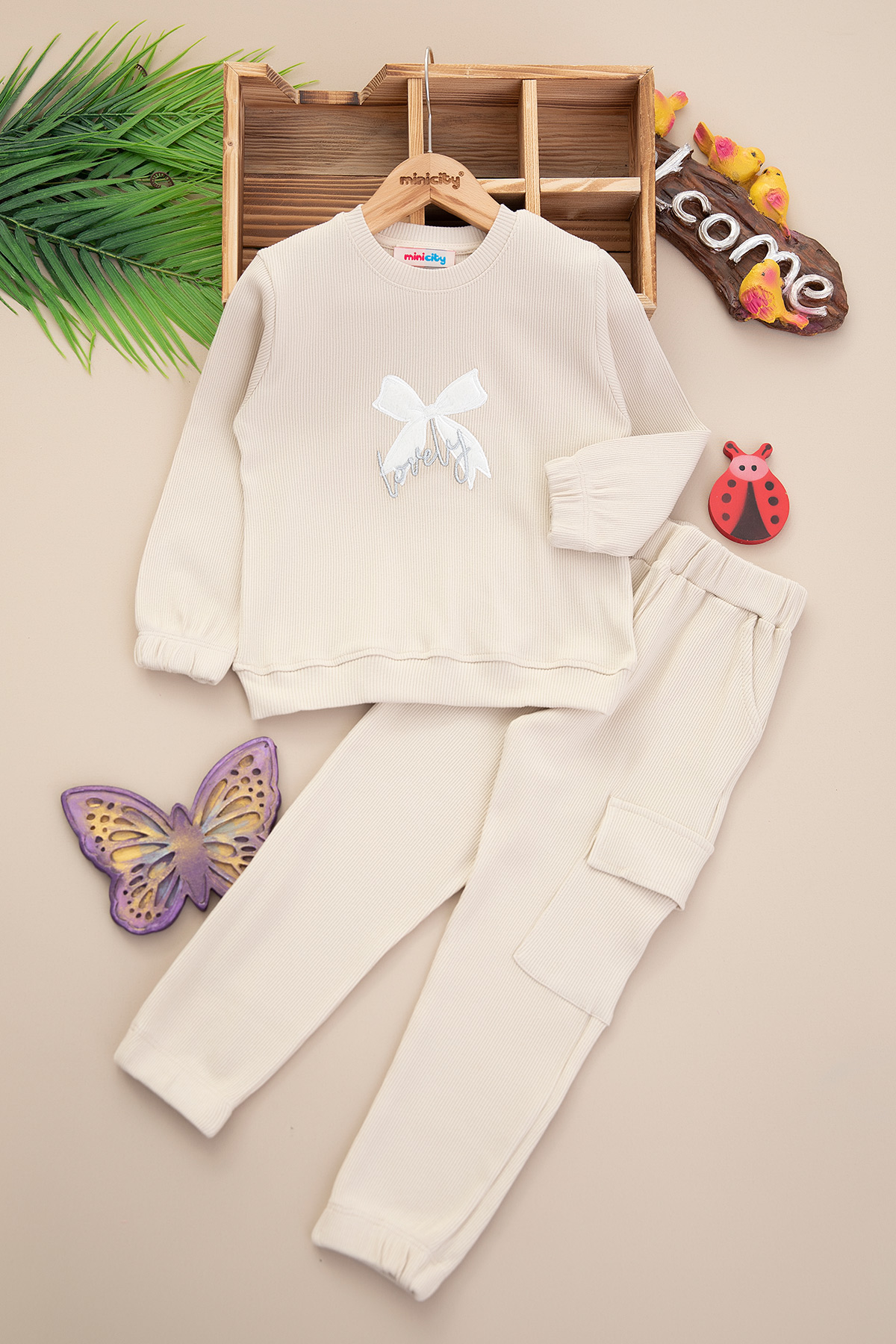 Kız Çocuk Fiyonk Nakışlı Kaşkorse Takım - 33102 (5-8 Yaş)