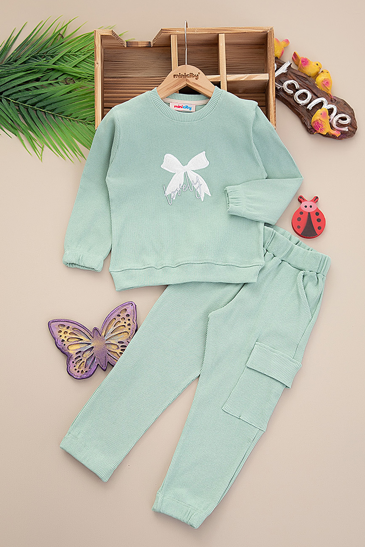 Kız Çocuk Fiyonk Nakışlı Kaşkorse Takım - 33102 (5-8 Yaş)