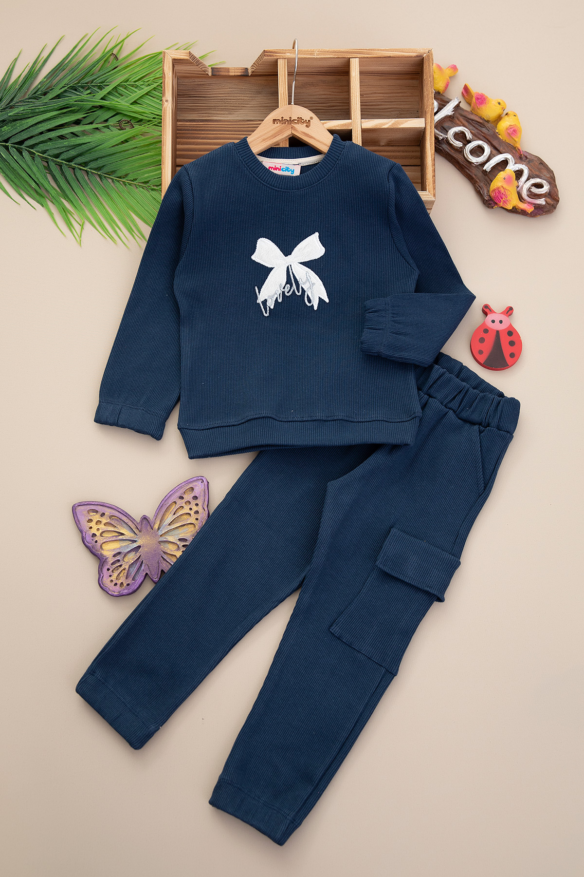 Kız Çocuk Fiyonk Nakışlı Kaşkorse Takım - 33102 (5-8 Yaş)