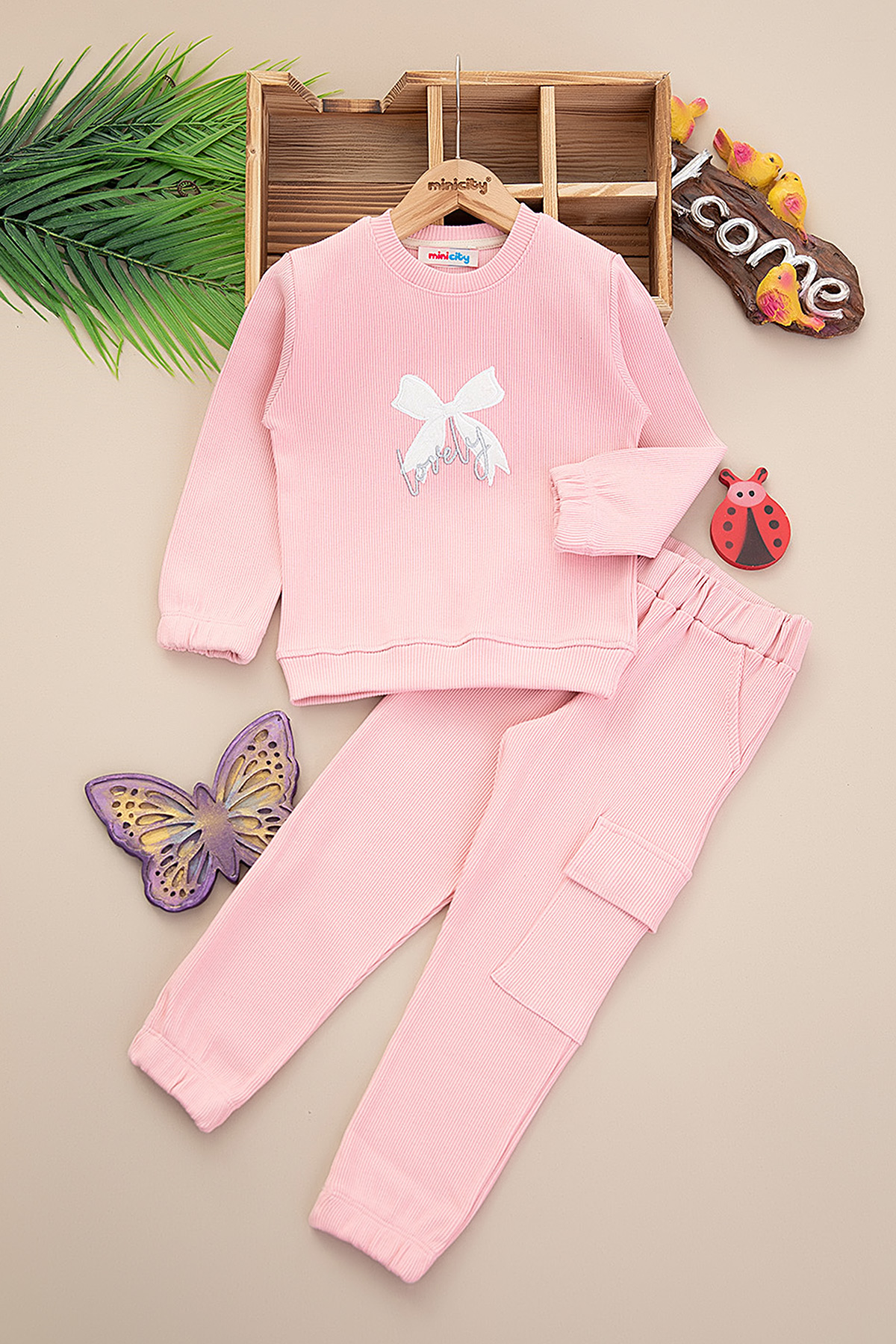 Kız Çocuk Fiyonk Nakışlı Kaşkorse Takım - 33102 (5-8 Yaş)