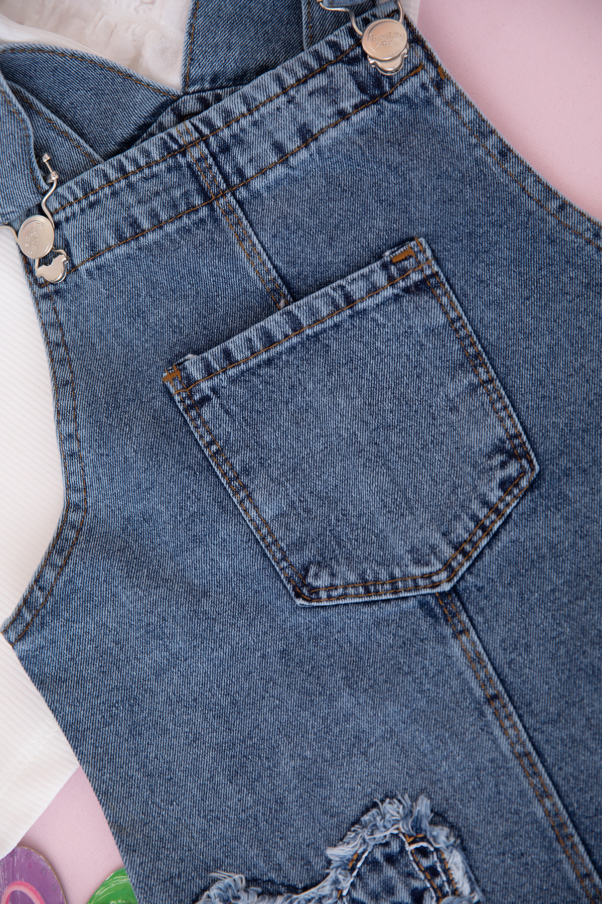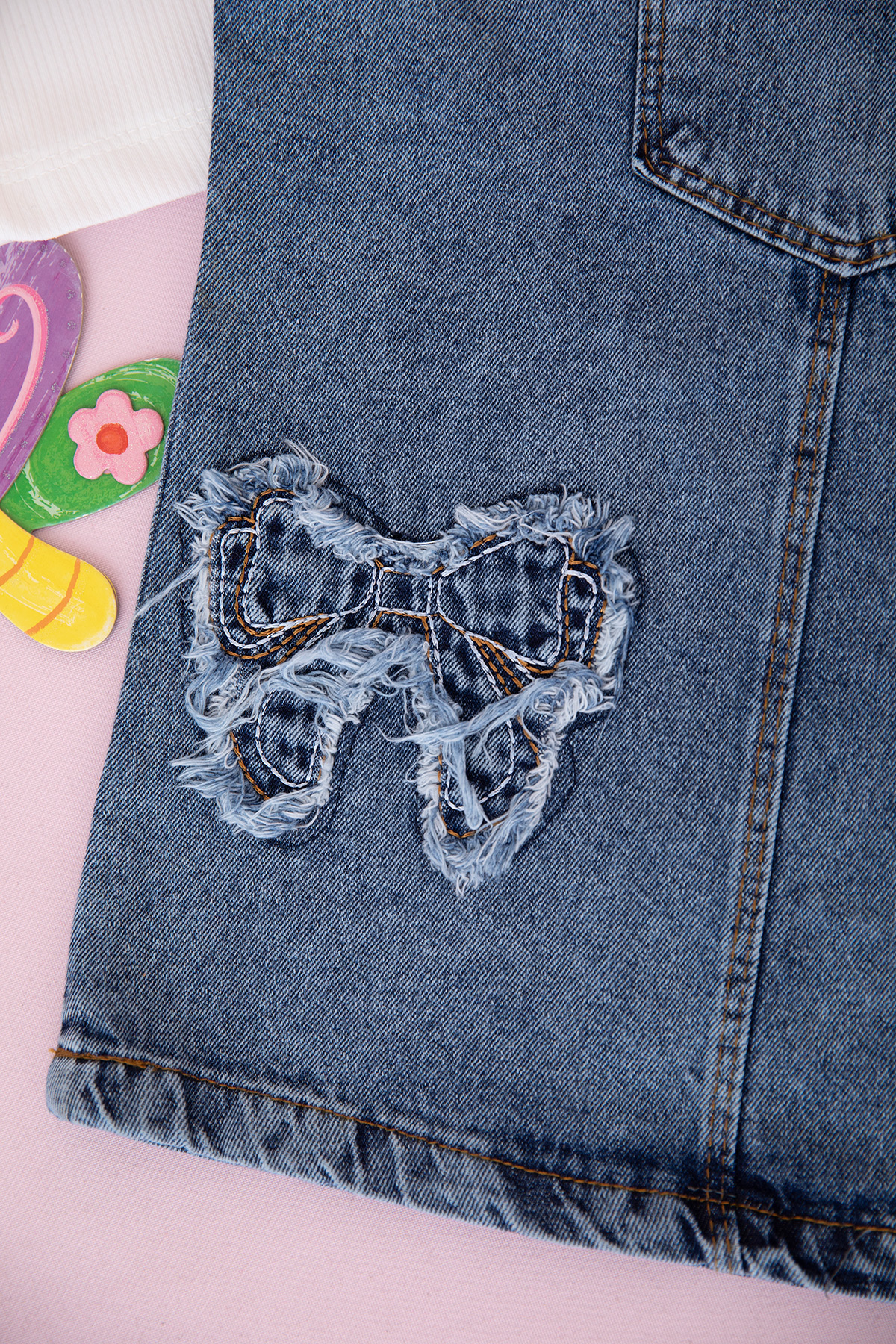 Kız Çocuk Fiyonk Nakışlı Kot Jile - 2684 (3-7 Yaş)